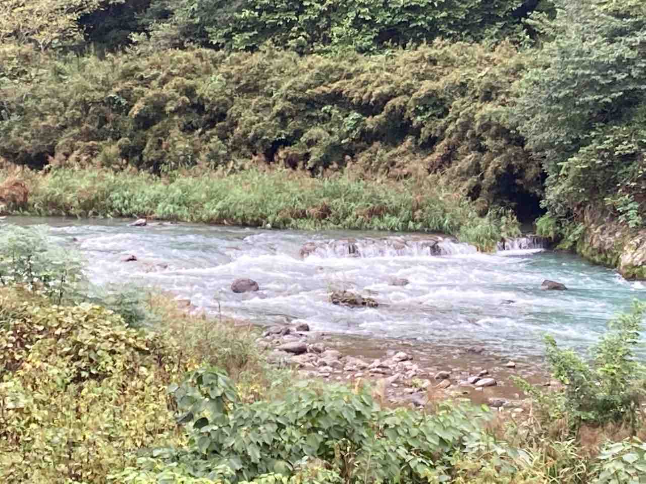 ↑中津川の流れ。