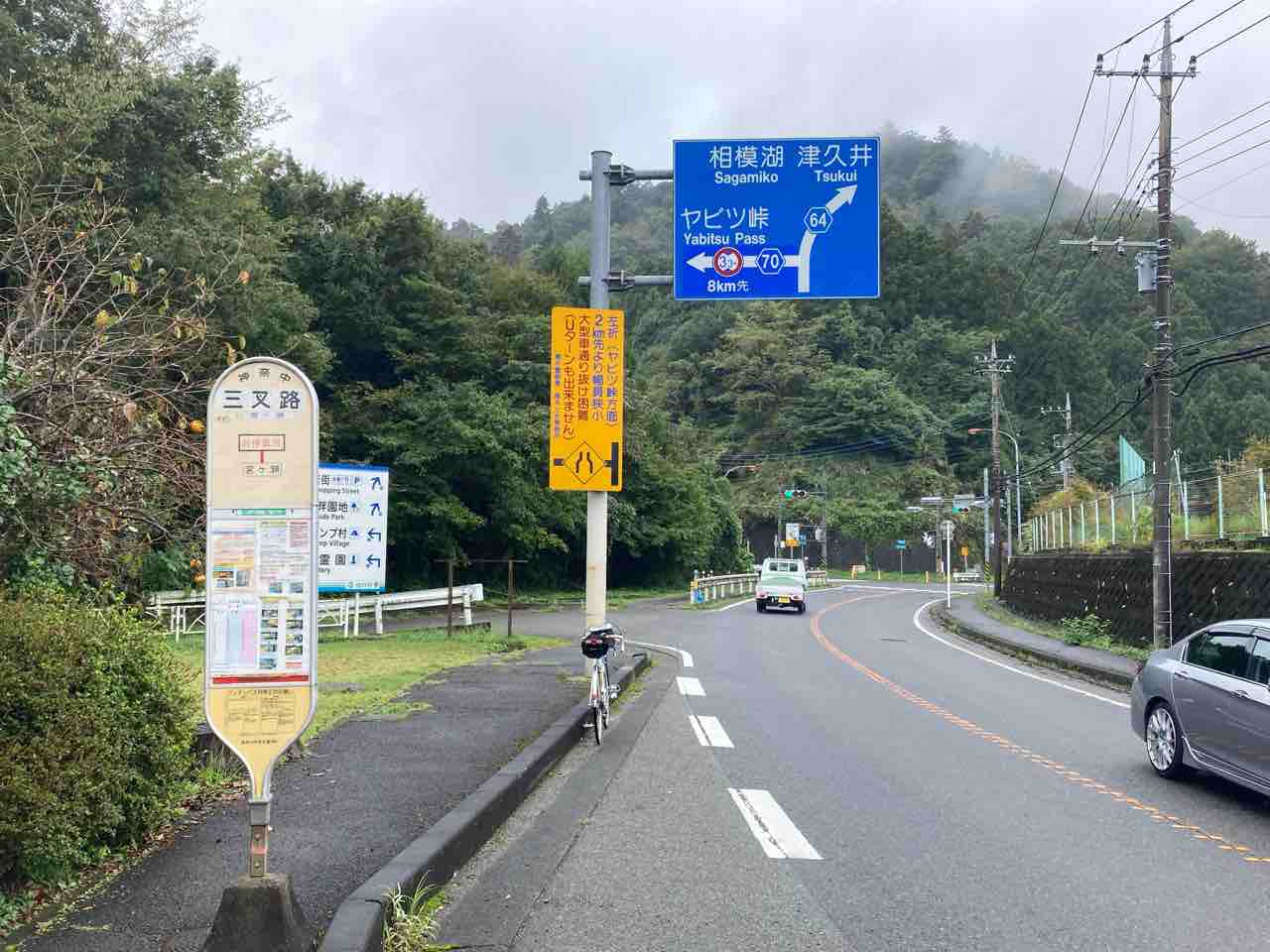 ↑半原日向を右折!坂登り切ったとこのローソンで甘い物を大量に買い込む。山中にはコンビニはない。丹沢あんぱんの向かい側だね。ロードバイクの人がたくさんいた。何人かに挨拶したが、ウーン!みんな反応薄いなぁ-_-b