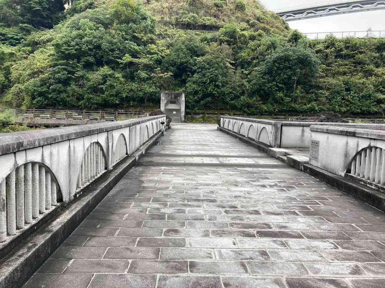 ↑あっち側は、あの壁の高さまで、水が満たされているんだと思うと、ちょろっと恐ろしい。と、ココで思惑ちがいが発生した。ななななんと、上まで行くエレベーターがコロナ禍休止中なそうだ。全く予期してなかったゼ!と、どうなるかというと!あそこまで自力で登らないかん。県道514号経由は流石にキツい。一旦あいかわ公園まで戻って、公園内を押して標高を稼ぐ事にする。