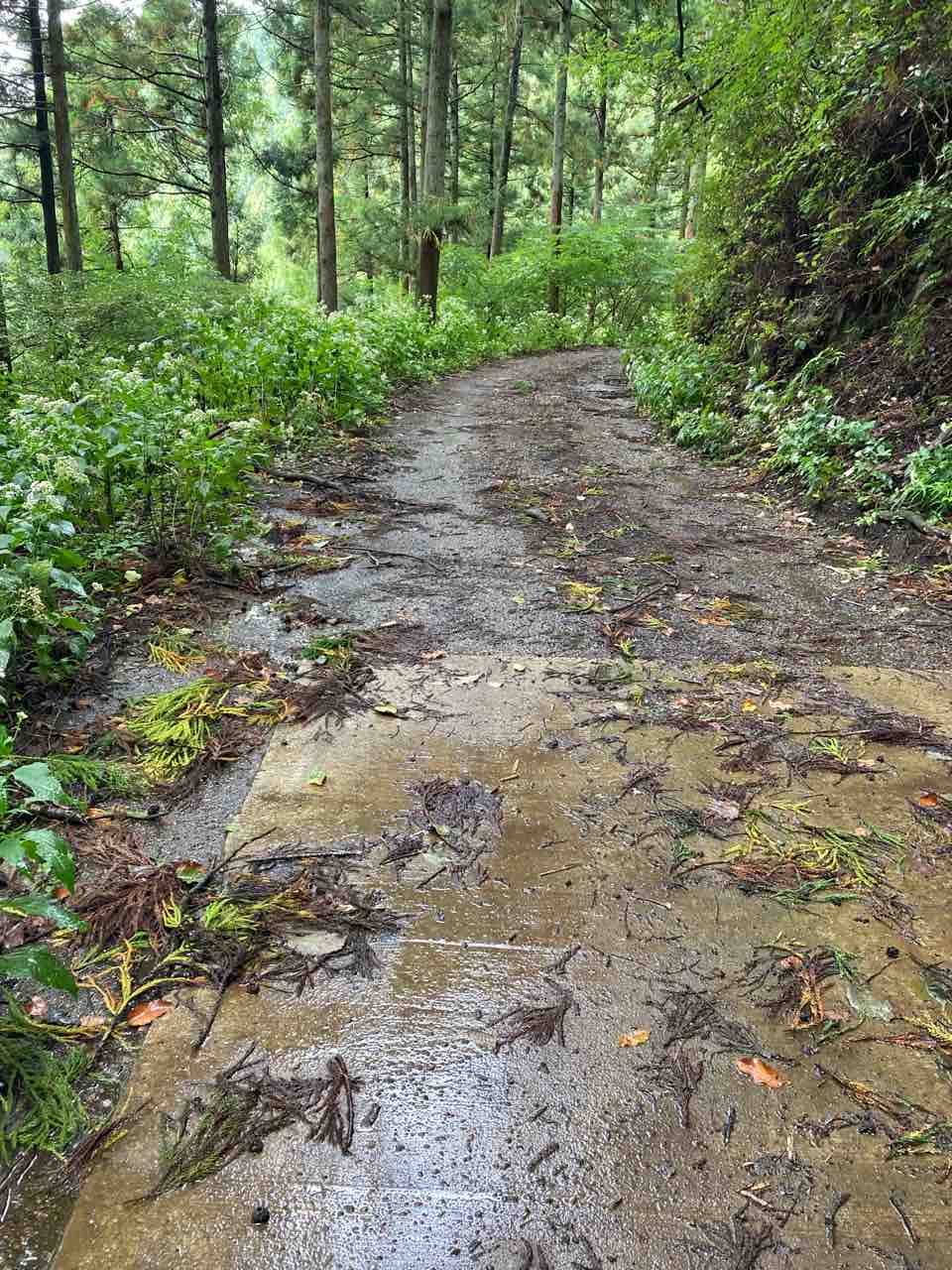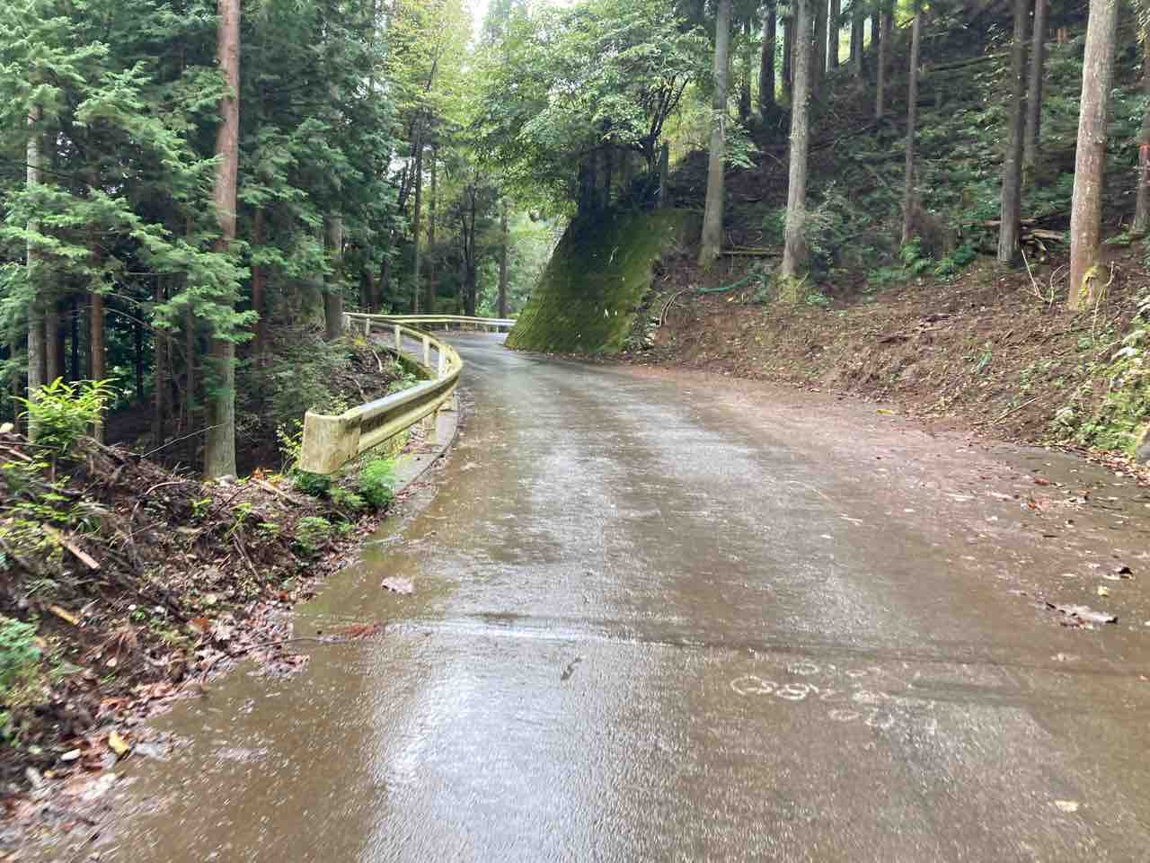 ↑↑勾配はこんなに緩かったか? 樹々のなかをクイックイッと登っていく。雨は相変わらず。ロードバイク多数。ほぼ泥除けなしだが、きっとびしょ濡れだろう?必要性は感じないのか?