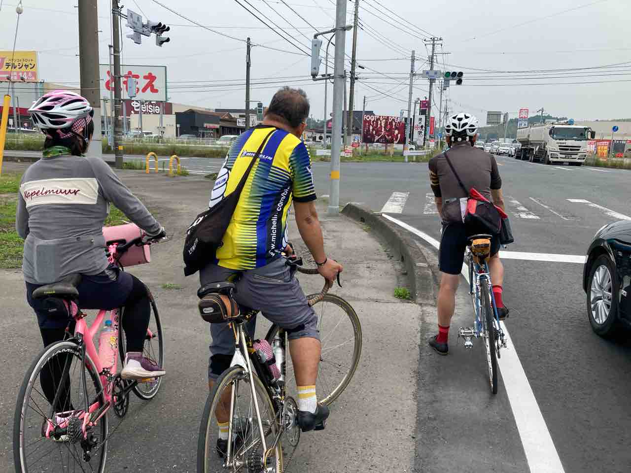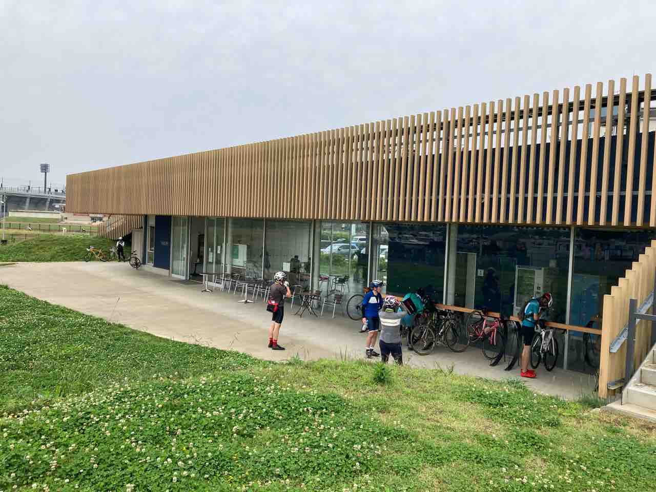 食べ終わったぢ転車のグループが出発していく。女性サイクリストが二人いたが、ふたりともマスクの代わりに覆面のようなものをつけていた。サングラスもいかにもそれっぽかったんで「覆面強盗みたいやなぁ」とぼそっ呟いたら、サングラスの奥から睨まれた。