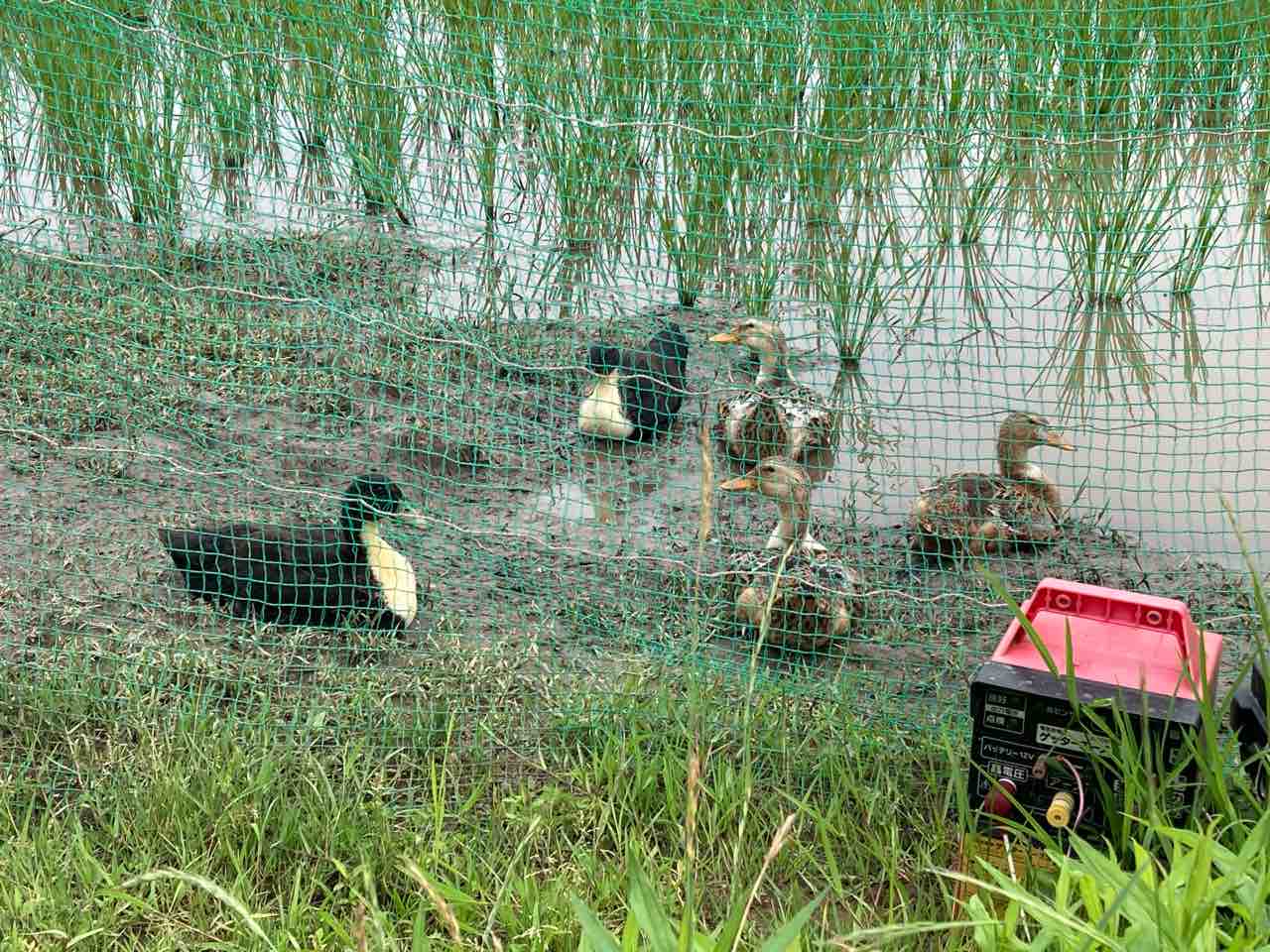 ↑あい鴨農法用のあい鴨!お役御免の後は食っちまうらしい。どうやって食ったら美味いとかで盛り上がった。横で人間たちが、ぢぶんたちを食う話しをしているとは、夢にも思うまい。
