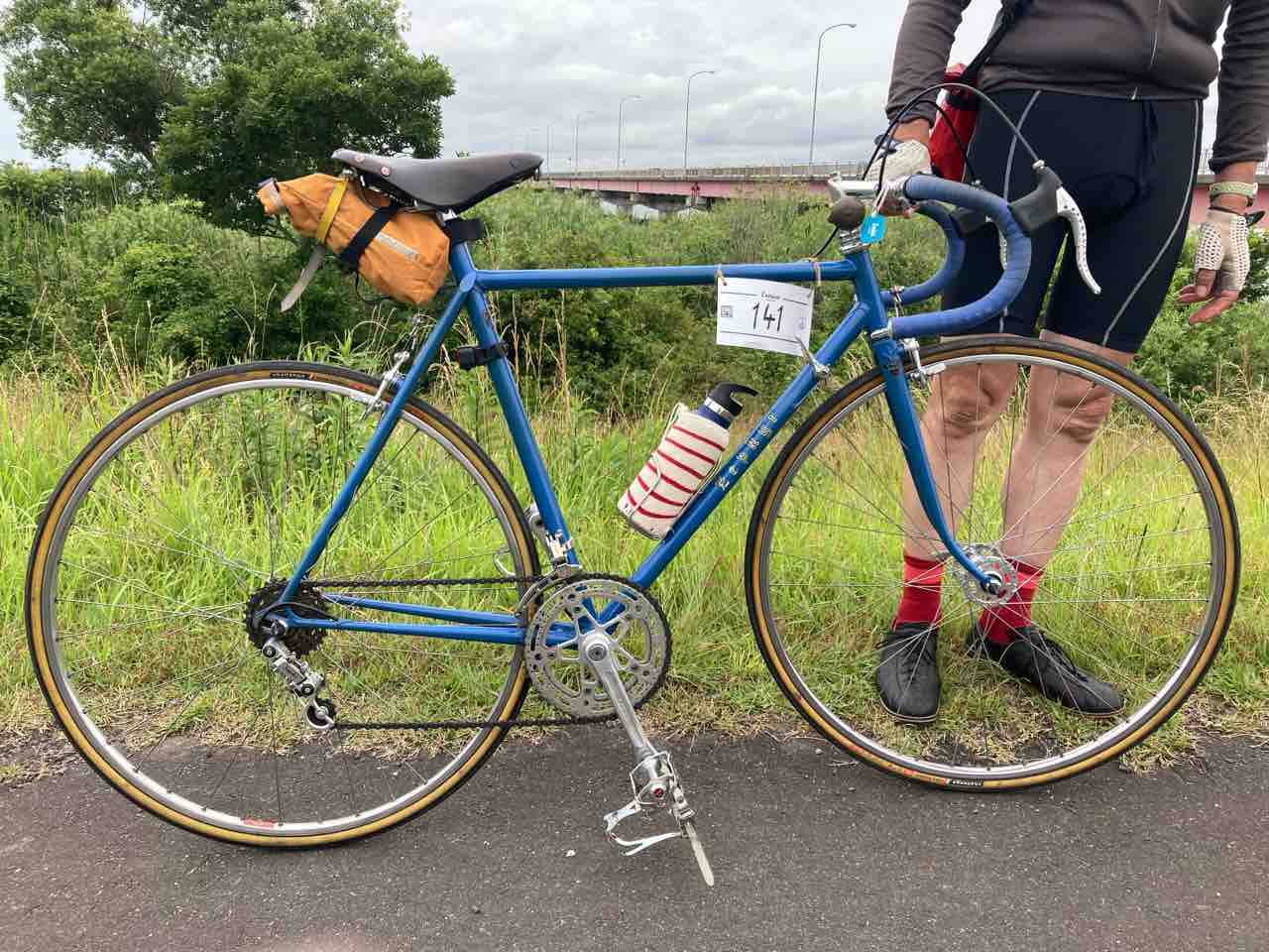 後機のサンツアー サイクロン7000!いつにも増してキレの悪いアキューシフト。前がアウターだと、後ろがトップに入らない。一旦前をインナーに落とすと、思い出したようにトップにガッチャンと落ちる。ダブルクラッチ状態だ。申し遅れたが、本日の使用機材はパナもん太700C輪行車!