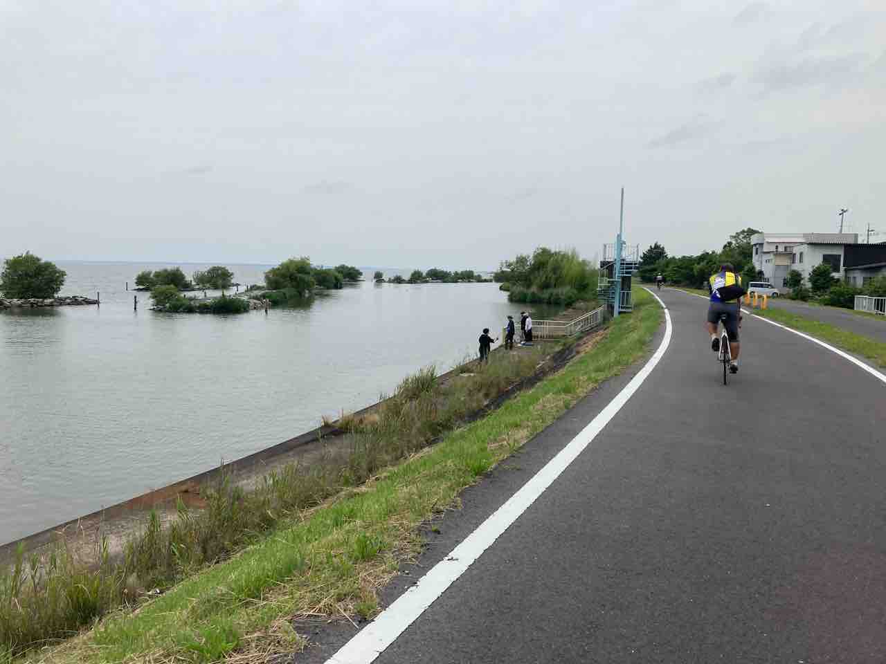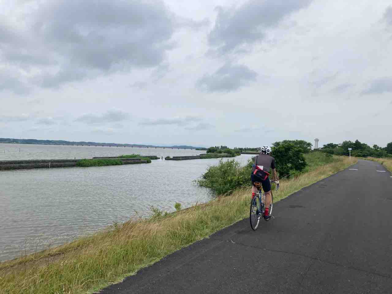 お腹ぽんぽこりんになって湖畔のりんりんロードに出た。この先土浦までは一昨年10月に漕いだ道!ひたすらに平坦だ。霞ヶ浦大橋の辺りだけちょろっと高い。