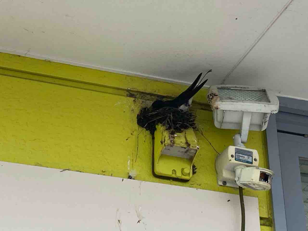 ↑巣の下にはこんな張り紙