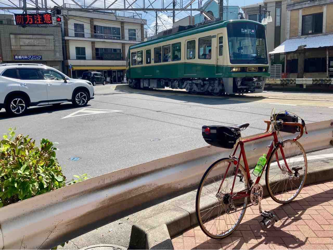 江の電に沿った、渋滞の道をテレコンと漕いでいたmutuurakko1173。もうまだしもまだしもmutuurakko1173もら、右前方の車の窓にあるものが映った。ぢぇぢぇぢぇ〜 あたしの後ろに連なるぢ転車の列だ!車道本線だけでなく、路肩の渋滞をあたしが招いていたのだ。一旦脇に逸れて先に行かせる。すまぬすまぬである。風光明媚な七里ヶ浜!しかしながら、のんびりと景色眺めながら漕いでいたら顰蹙(ひんしゅく)を買うのである。
