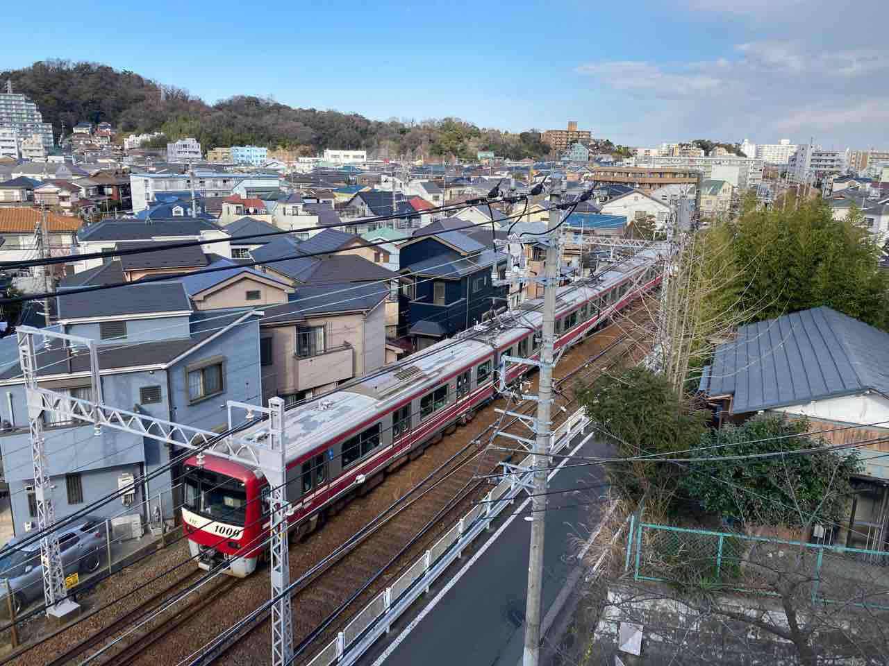 ↑境内下には京急逗子線。あたしンちは向かいのやま並みの手前だ。