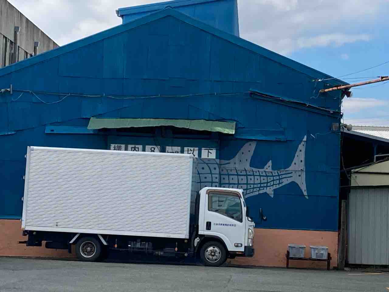 ↑この倉庫の壁にはジンベイザメのイラストが描かれといるんだが、いつもトラックが駐まってんだよなぁ〜