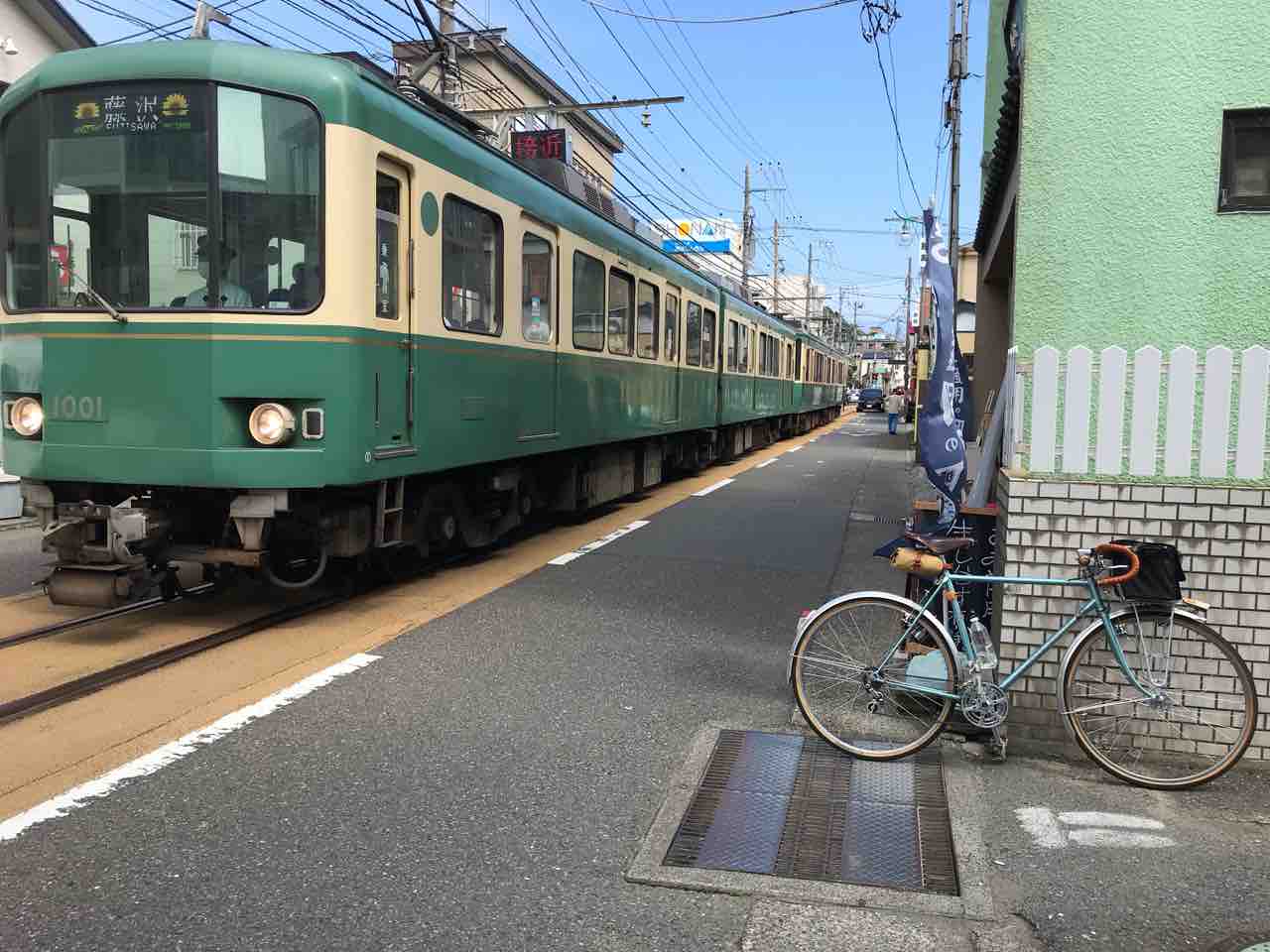 ↑軌道上を漕いでいたら、いいタイミングで江ノ電が来た。Nortonを駐めてにわか鉄ちゃんに早変わり。その後の134号はずーっと渋滞。何台かのローディーをあたしが引っ張るカタチで逗子方面を目指す。何のことはない、あたしが遅いので、後ろに繋がってるだけだ。すまぬすまぬ。稲村ヶ崎を過ぎたあたりで、前方にハイレグの尻を発見! ややっ! さっき江ノ島で見かけた丸ハンのピストだ。おいおい、こんな人通り、クルマ通の多い国道を、その格好で走るかぁ〜 しかも遅いし〜 しばらくSiriを見ながら続き、左手挙げて抜かせて貰った! ありがとう(^^) ハイレグのSiriを見たかったからではない。クルマが渋滞していて抜けなかっただけだ。念のため。