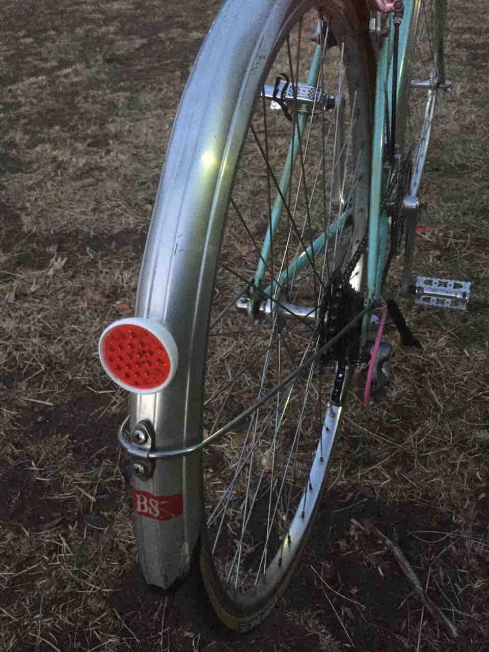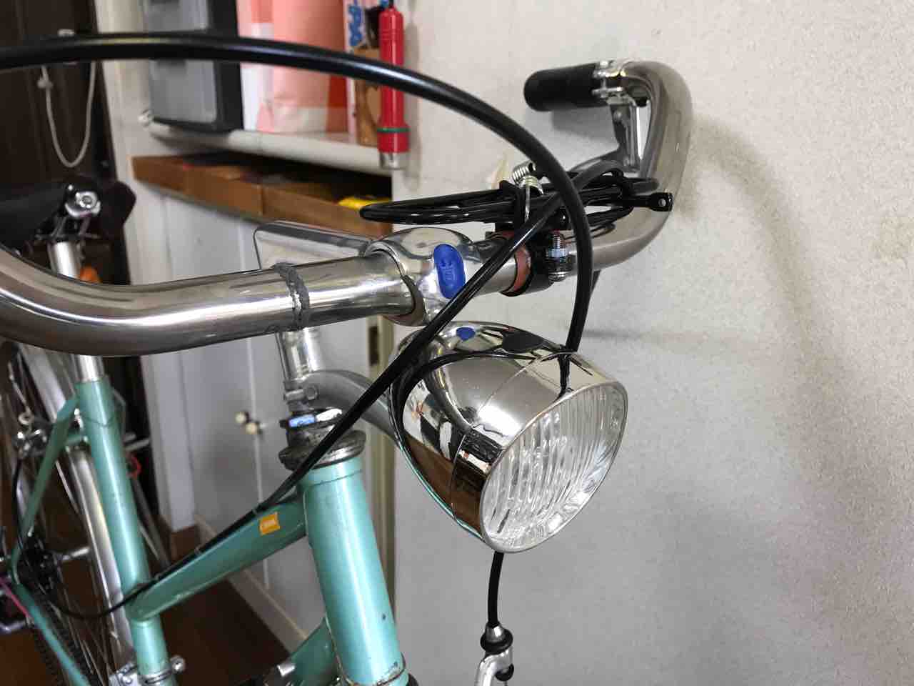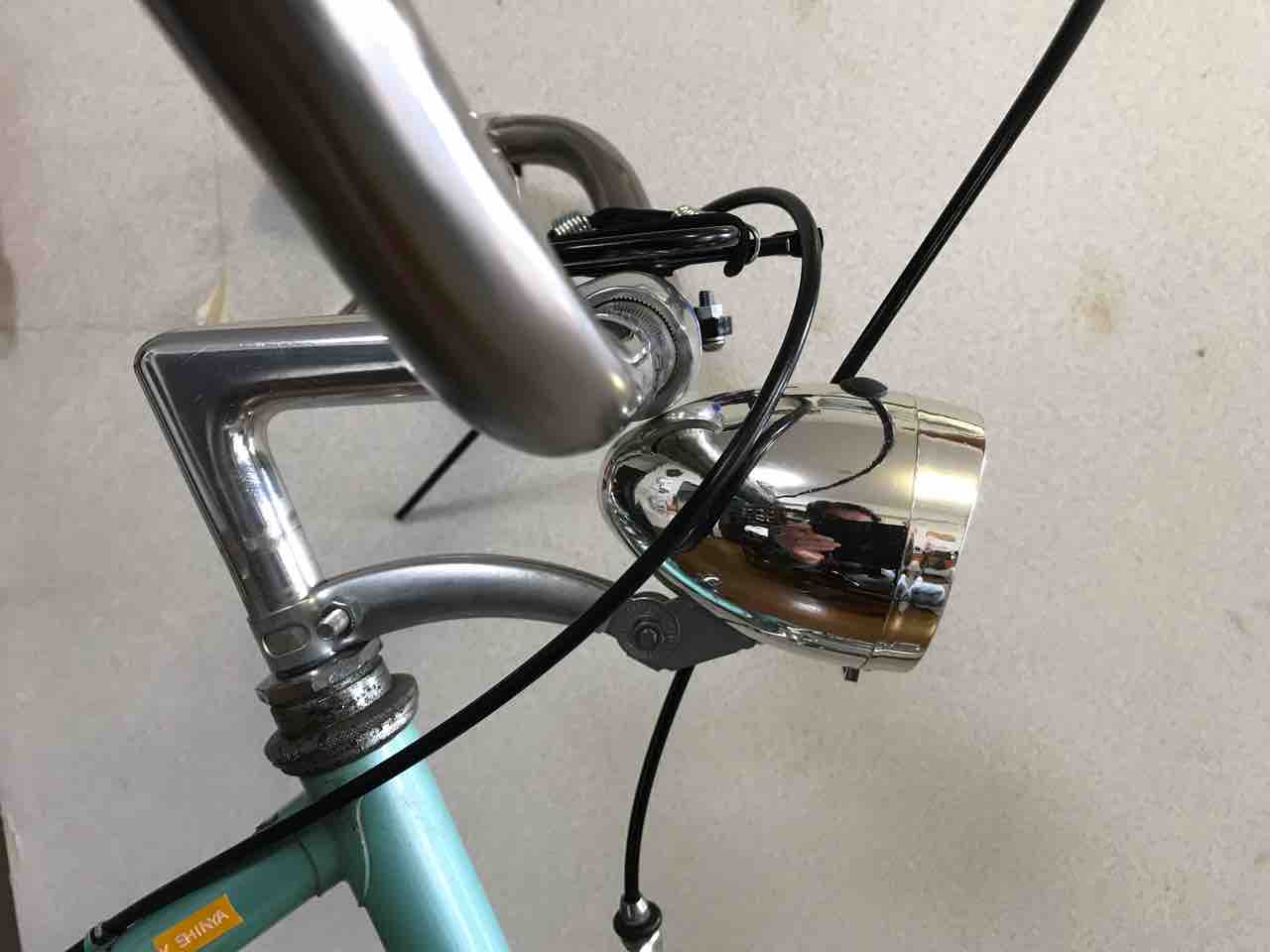 ↑ガードの先端に砲弾型ライトを付けてみた。最初の頃の赤色を配した頃から一転!ホイールを取り替えたのもこの頃だ。ハブダイナモを廃し、ウイングナット留めからクイックレリーズに変わっている。