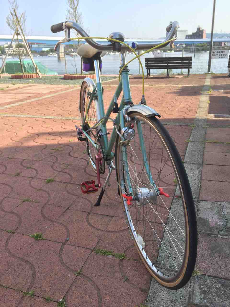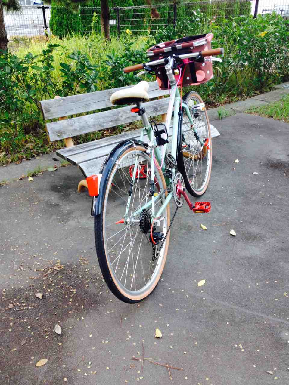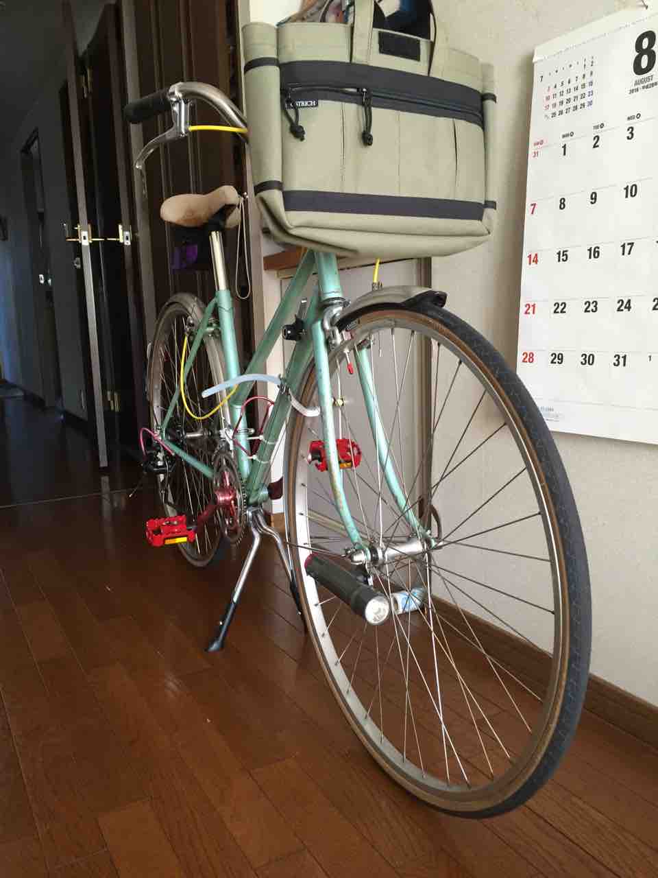↑2013年頃のすがた。この頃までは殆ど変化なかった。というか乗らずに放置してあったと言った方が合っているだろう。ヨウは改修して乗れるようにしよう!ということで、ちょろっと可愛い系に仕上げた結果だ。フロントバスケット、黒色のプラガード、ハブダイナモ装備。ペダル、クランク、ウイングナットは赤色で合わせた。もっとも変速機のところのウイングナットは折っちゃったんでシルバーだ。