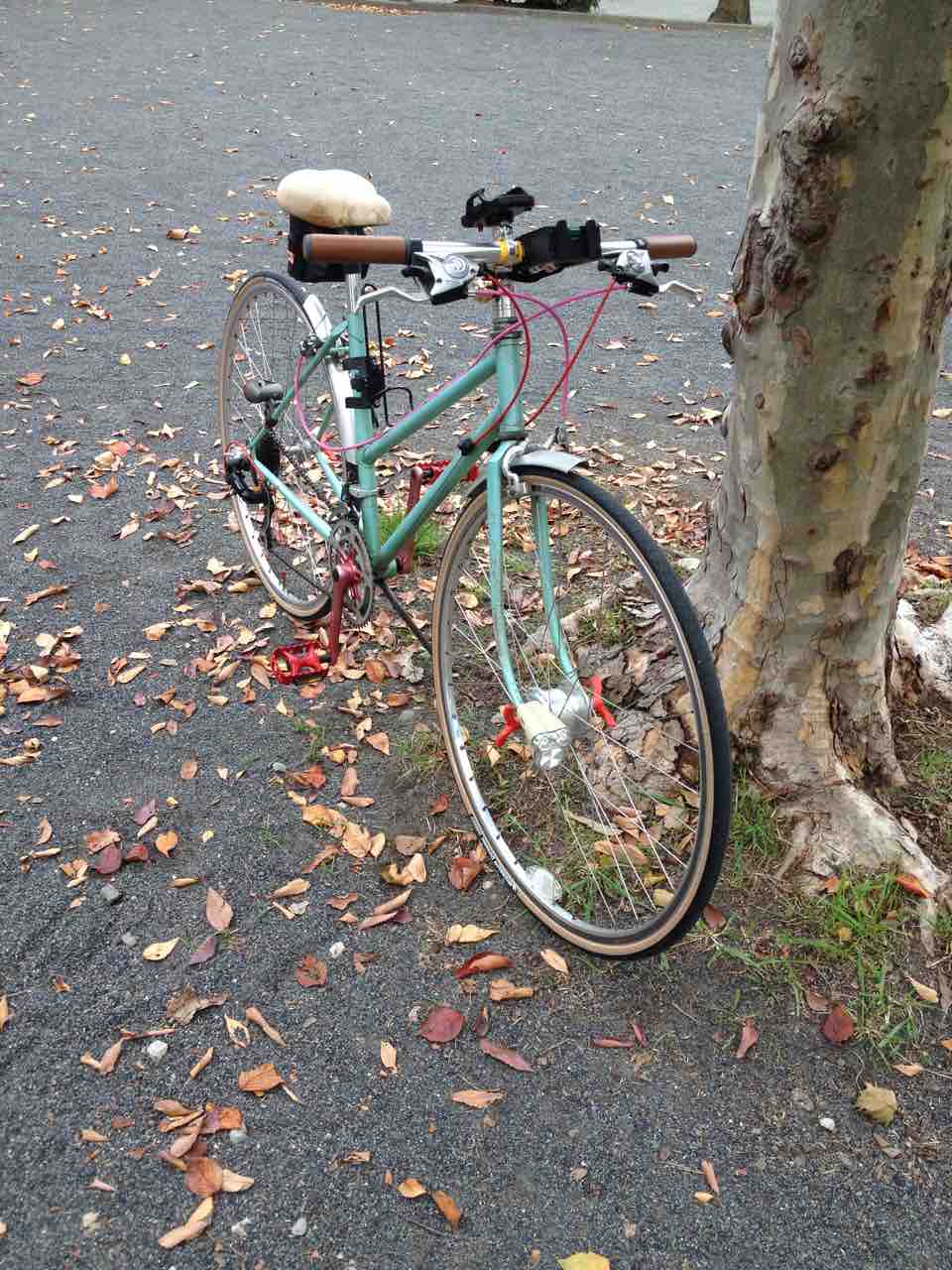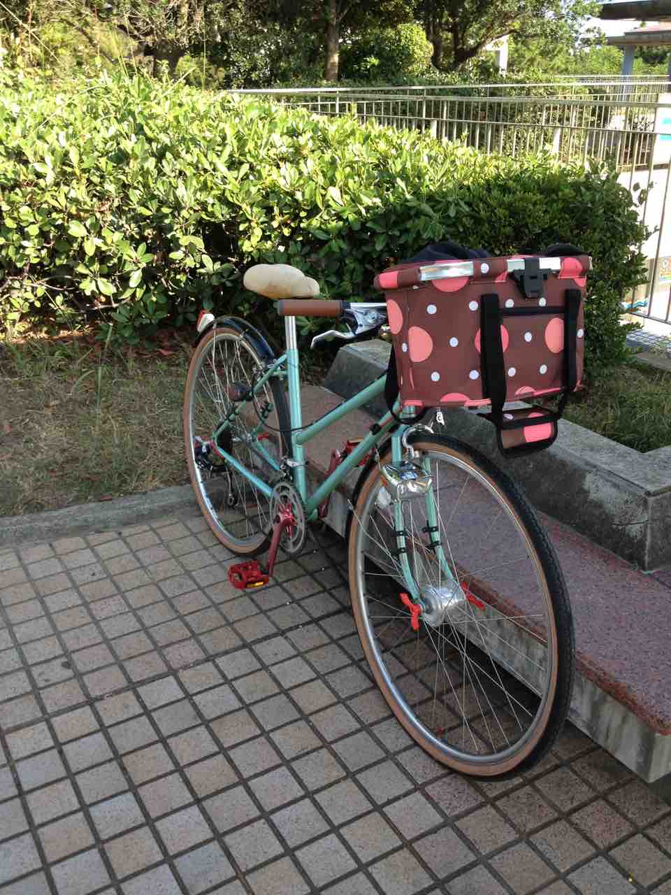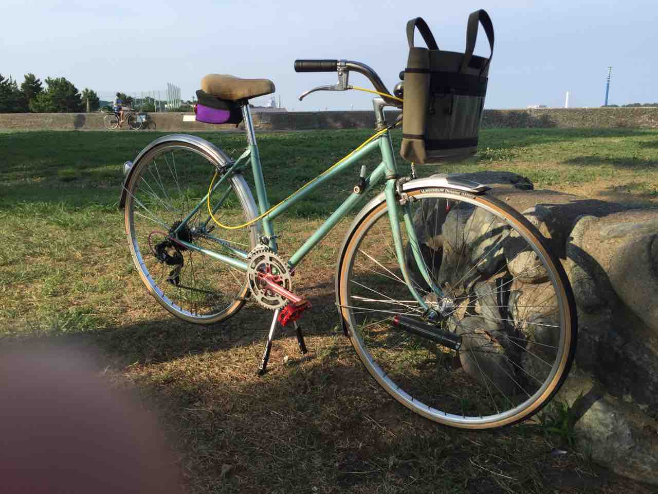 ↑2013年頃のすがた。この頃までは殆ど変化なかった。というか乗らずに放置してあったと言った方が合っているだろう。ヨウは改修して乗れるようにしよう!ということで、ちょろっと可愛い系に仕上げた結果だ。フロントバスケット、黒色のプラガード、ハブダイナモ装備。ペダル、クランク、ウイングナットは赤色で合わせた。もっとも変速機のところのウイングナットは折っちゃったんでシルバーだ。