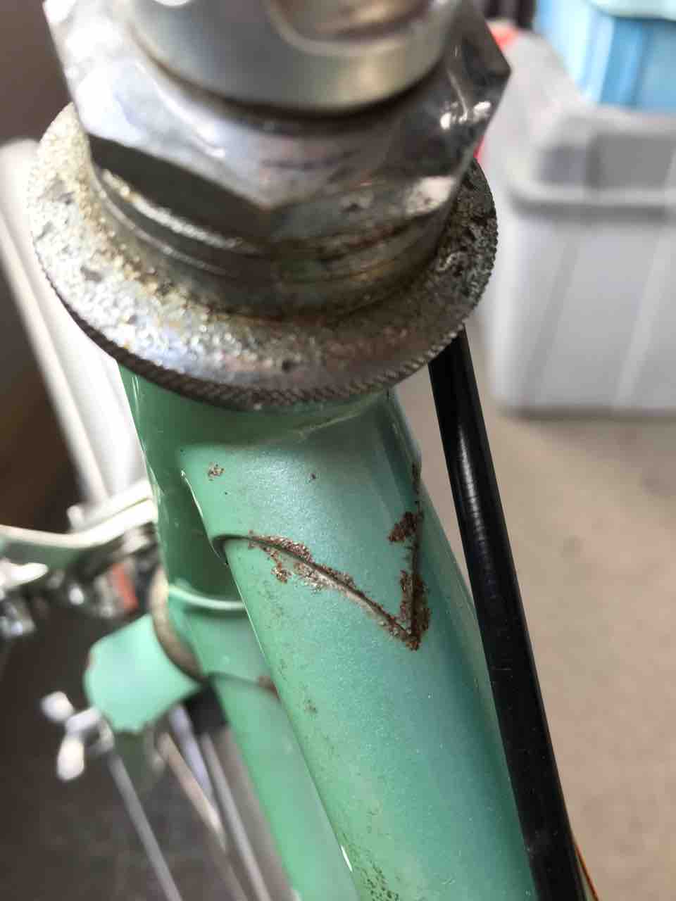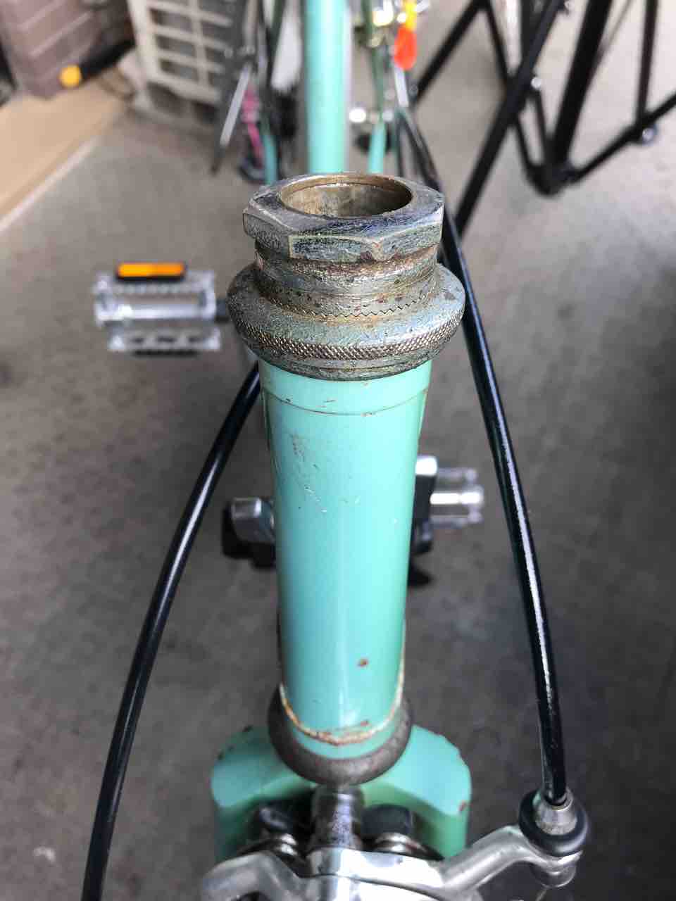 ↑せっかくヘッドセット奮発したのに!エッ、センス悪いって? カラスの勝手でしょ。仕方ないので、グリスアップして軽くサビ落とししてお終い。ロックナットとギザギザスペーサーだけでも交換しようかなぁ〜 と目論見中!
