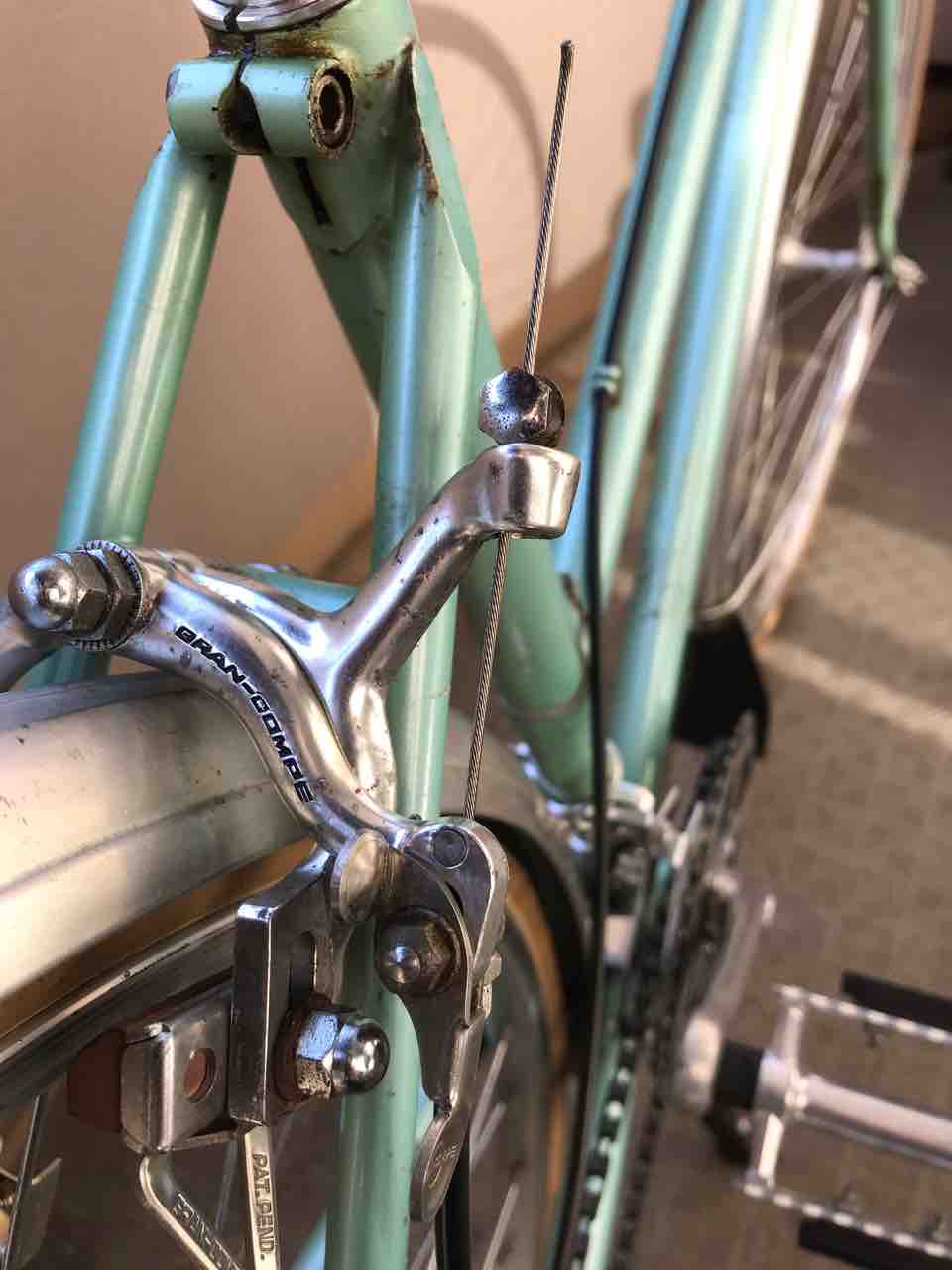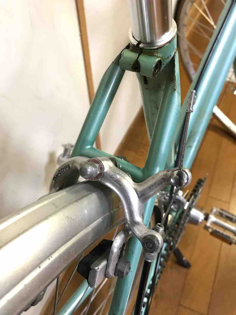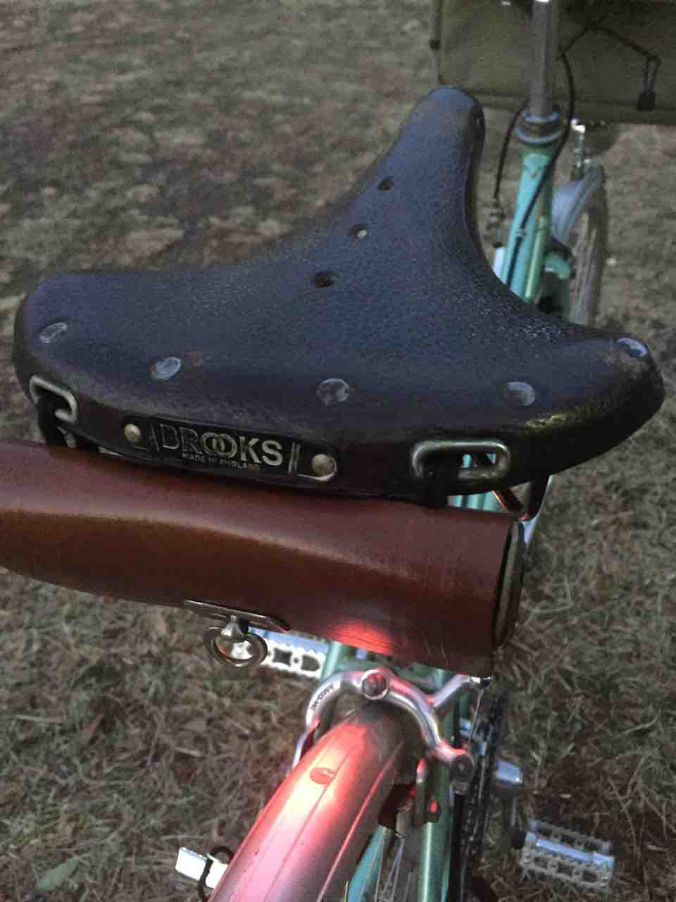 ↑サドルをセライタリアアナトミックからB73に交換。前のオーナーがじっくり慣らしてくれたみたいで、サイコーの座り心地だ。最近乗ってなかったせいか、カビが生えてた。