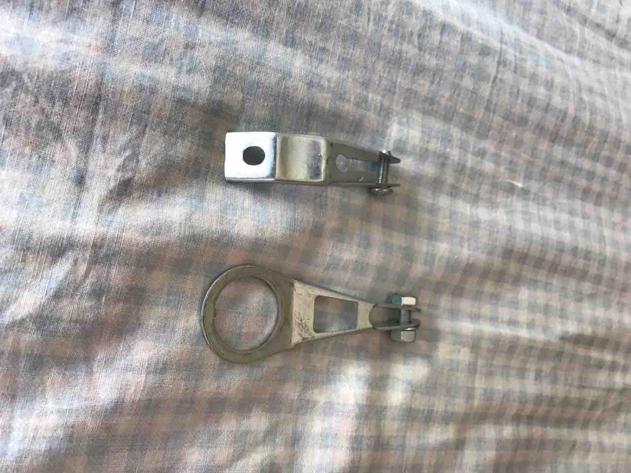 ↑ライト用のスティは色々探して、やっとコレにたどり着いた。突き出しが長いんで、ステムのアゴにライトが干渉する。この位置でギリギリだ。