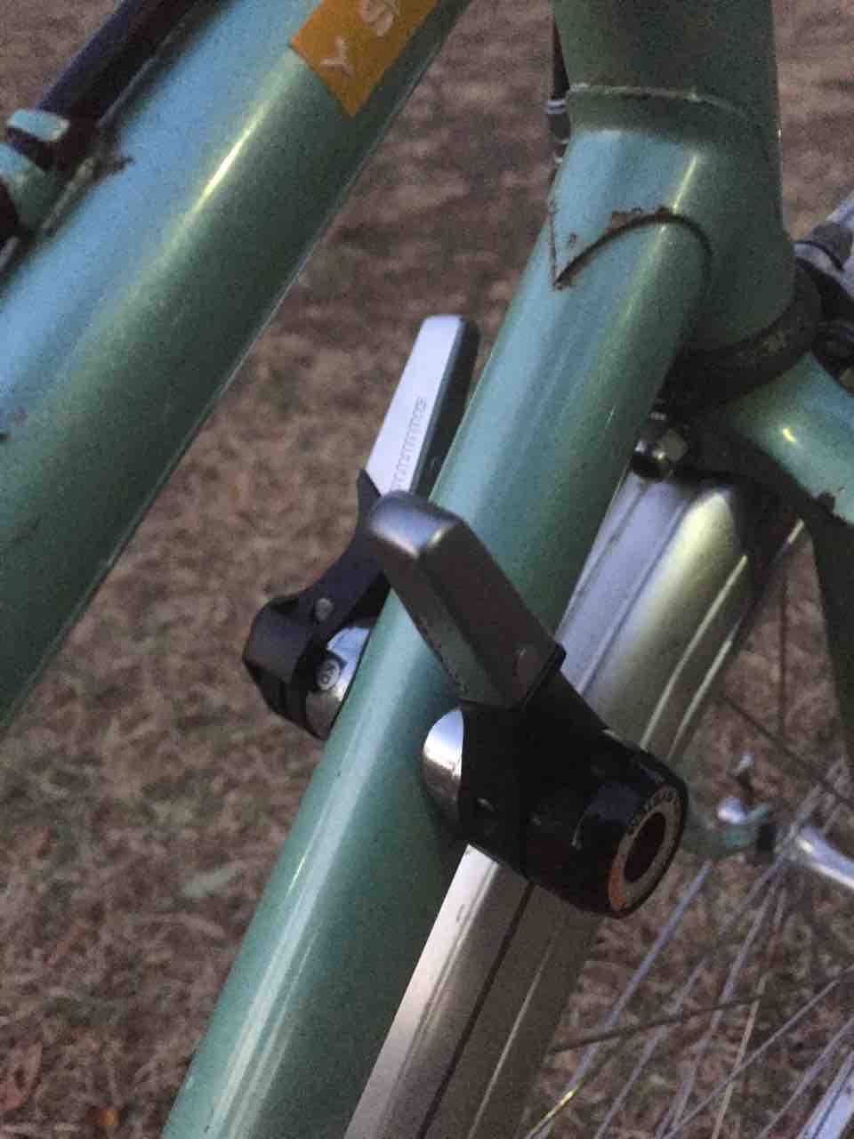↑Wレバーで2×7段を動かす。プロムナードハンドルからダウンチューブは遠く感じるが、不自由ではないので良しとしよう。