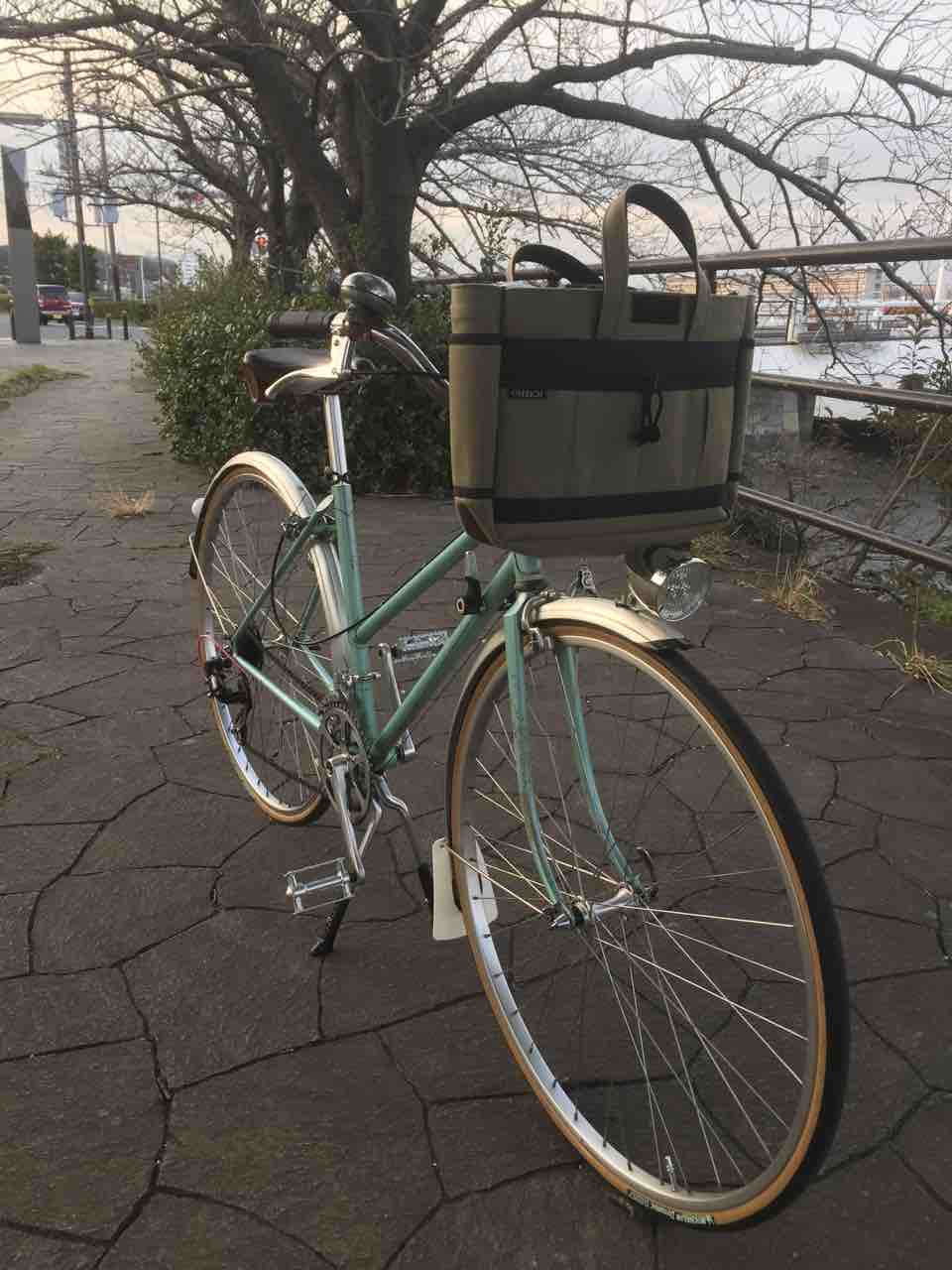 ↑ということで、前カゴを付けてみた。大型のカゴなんで、それなりのキャリアも必要。
