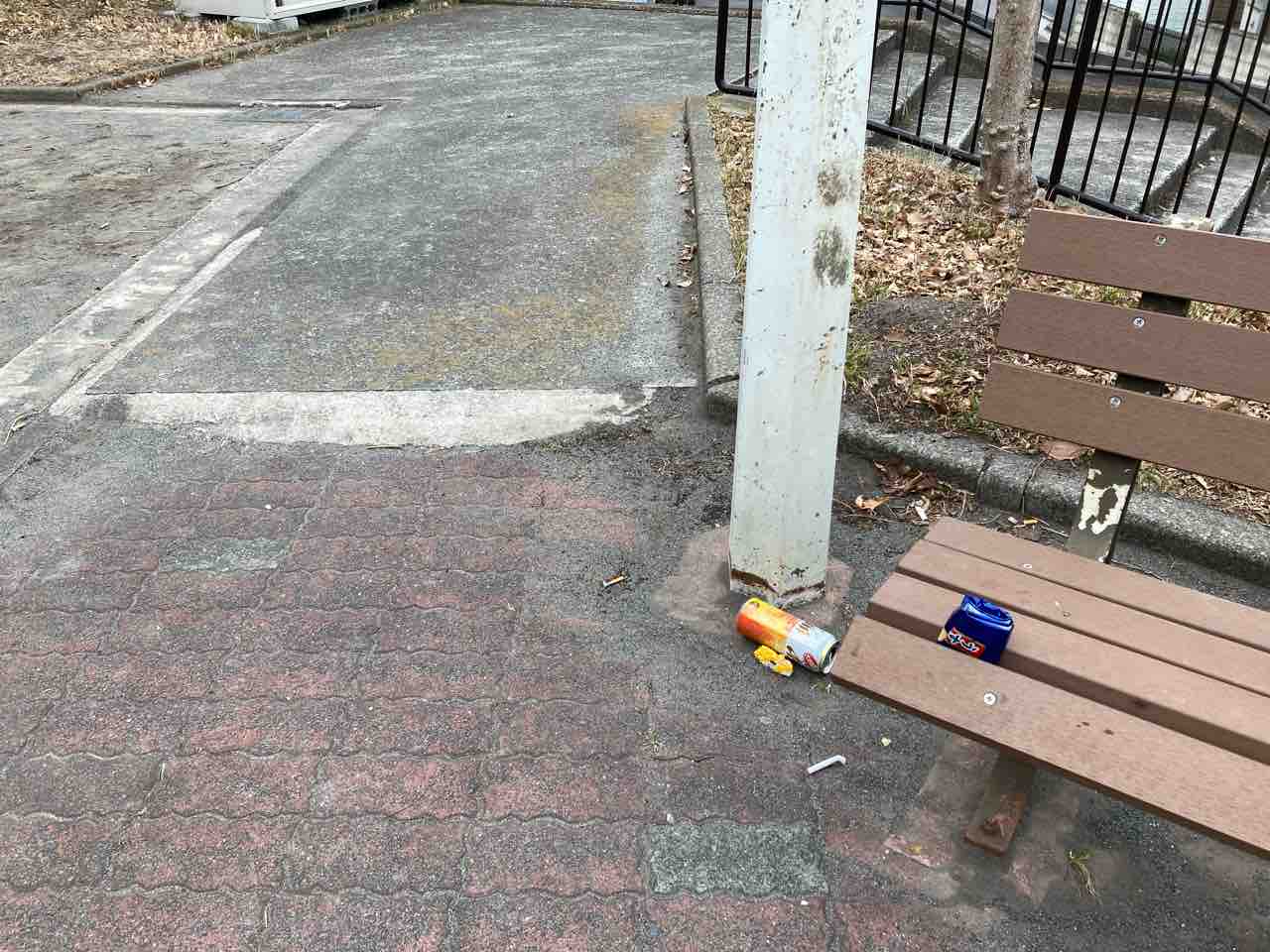 ↑途中立ち寄った公園のベンチ!外呑みの痕跡あり。後始末はキチンとしましょう。