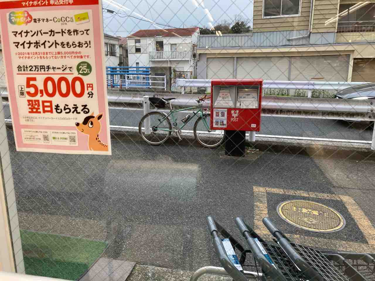 ↑途中のスーパーで買い物中!いつもはカリマーの携帯リュックを忍ばせてくるのだが、何故か今日は忍ばせ忘れた。仕方なくレジ袋1枚購入 不安定なので転けないように慎重に漕ぐ。