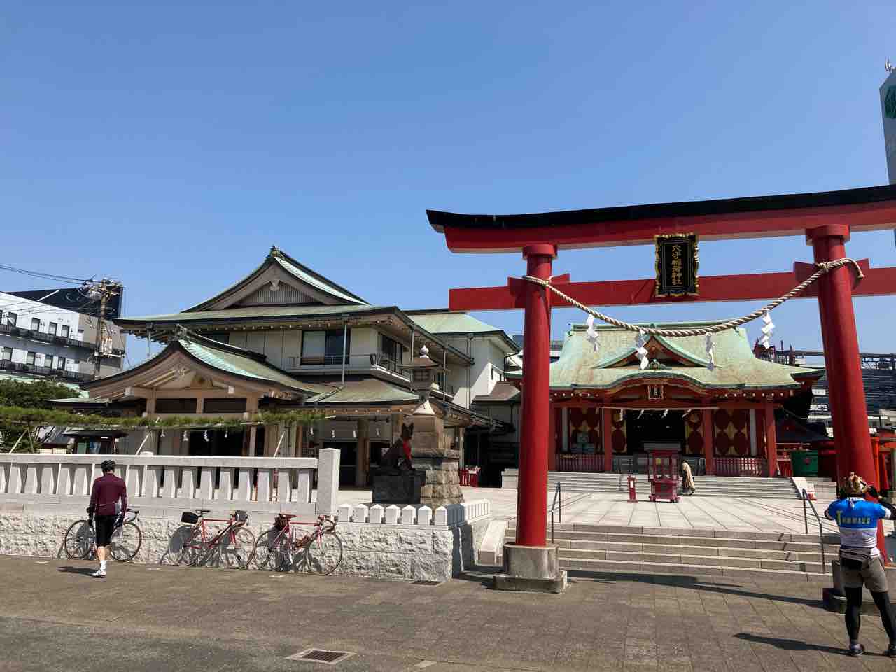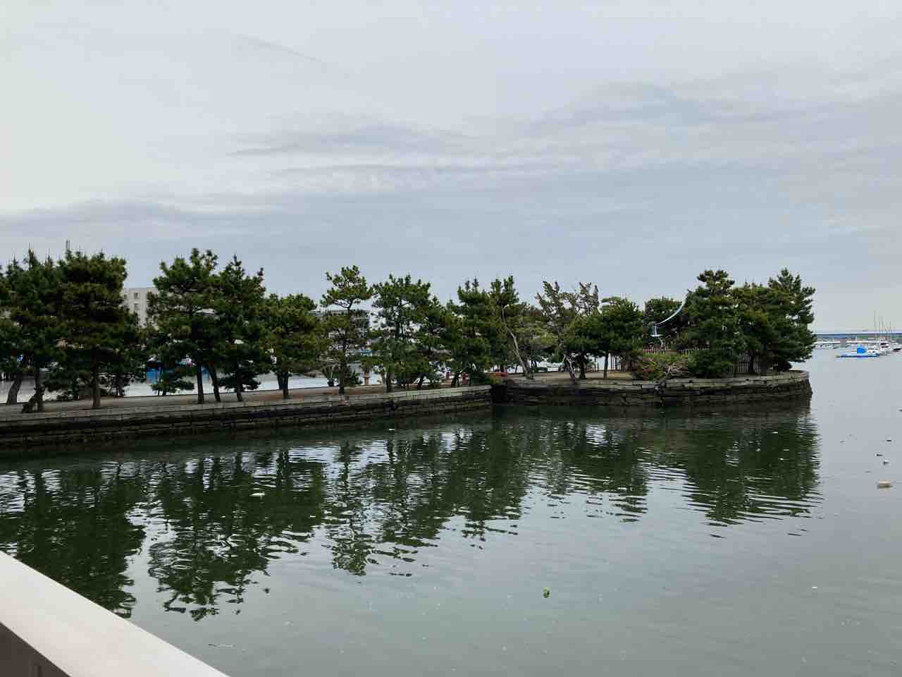↑琵琶島の向こうには、国道16号を挟んで瀬戸神社がある。瀬戸神社は源頼朝、琵琶島神社は北条政子が建てたらしい。