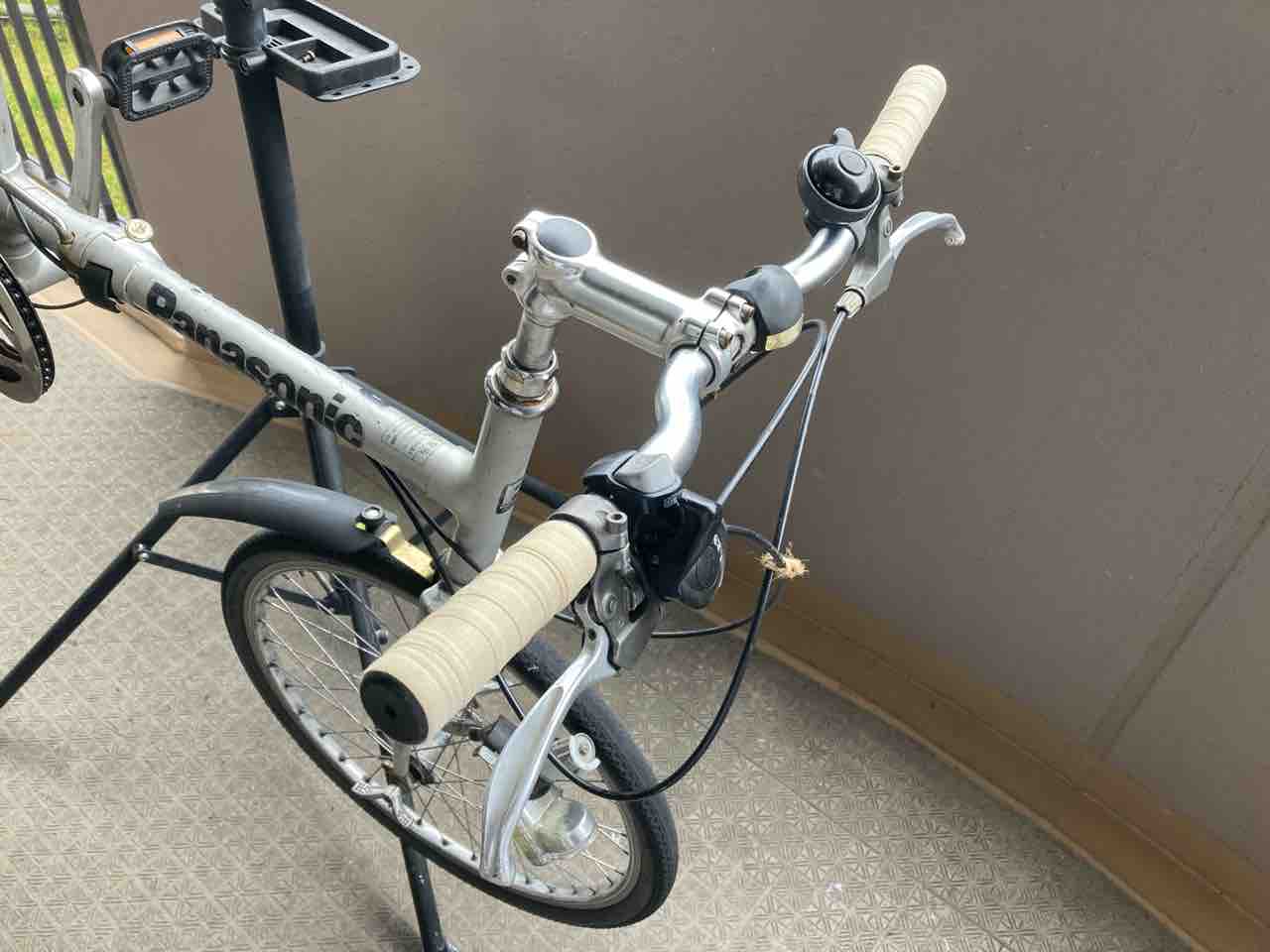 本降りになる前に帰り着き、ビール飲みながらベランダでぢ転車を弄った。通勤用のパナソニック レ・マイヨW20WOをお手入れだ。全体の拭きあげ。チェーン洗浄。注油。サドルの穴塞ぎ。仕上げでバーテープを張り替えた。ハンドルが綺麗になっただけで、気分転換になった。この頃は本降り状態となっていた。