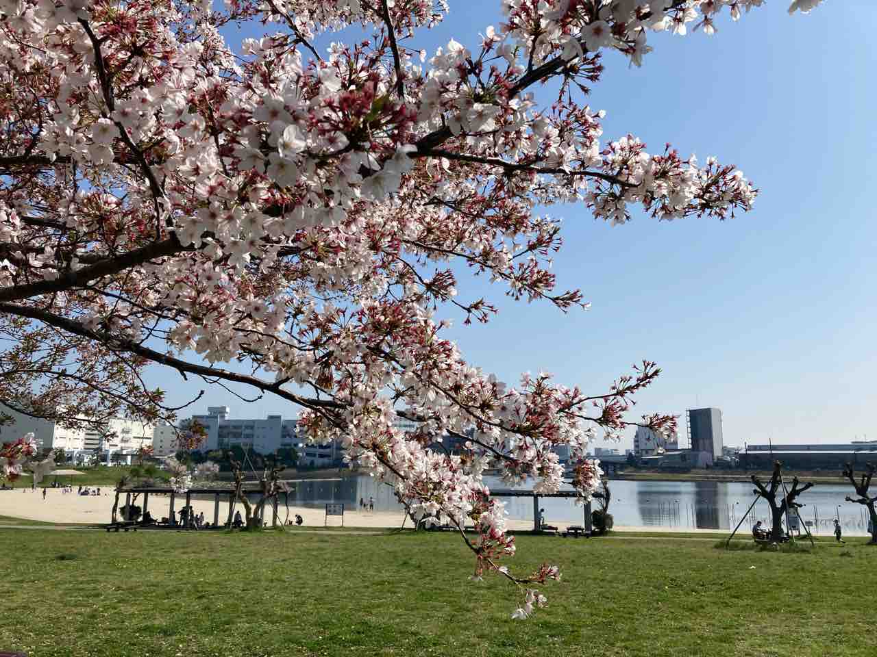 ↑平潟湾越しに野島と夕照橋!