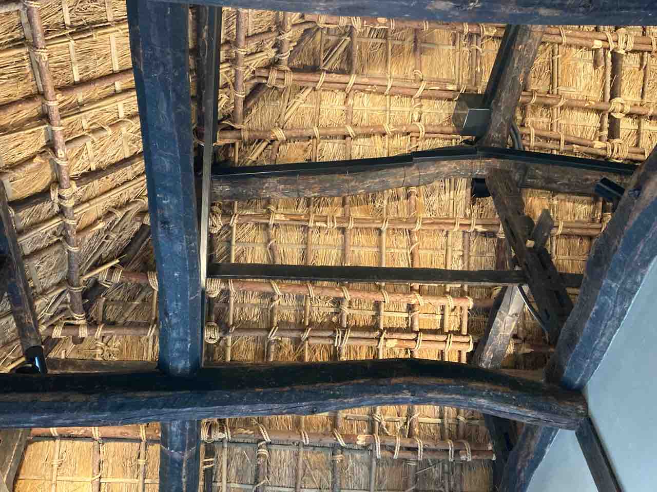 ↑茅葺き屋根の裏側