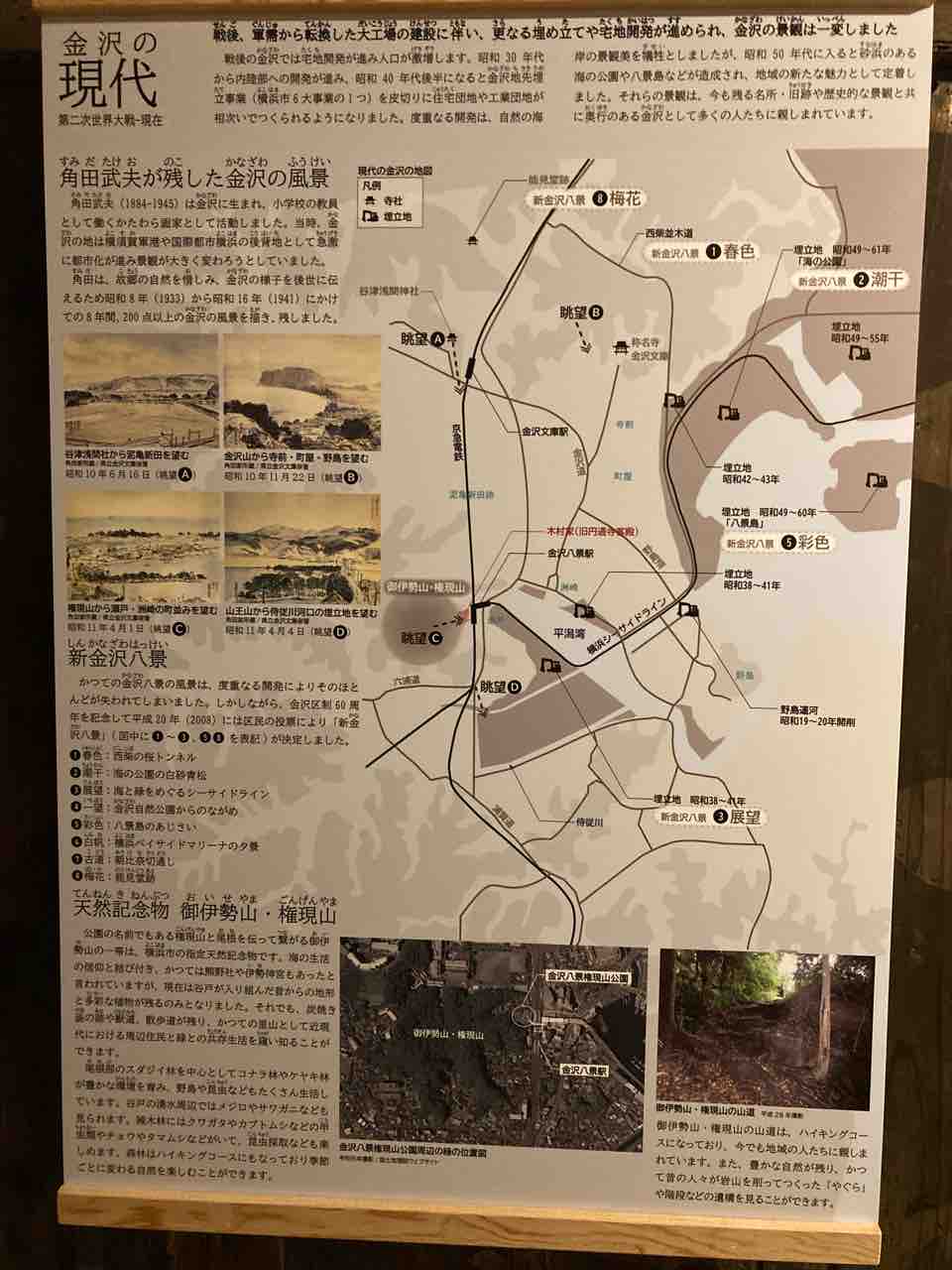 平潟湾沿いにグルーッと回って琵琶島神社に向かう。そして金沢八景駅裏の権現山公園へ!ココはずーっと工事していて、この4月1日にオープンしたばかりだ。先ずは旧円通寺客殿(旧木村家住宅主屋)を見学!受付の方がいとうあさこ似!親切に対応してくれた。東照宮のあった展望デッキ、権現山からの眺望も素晴らしい。この頃から雨がぽつりぽつりときた。