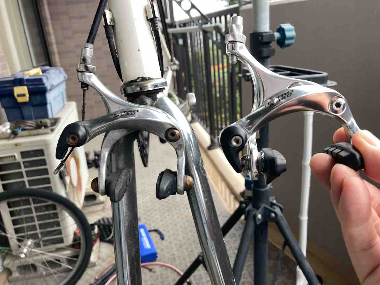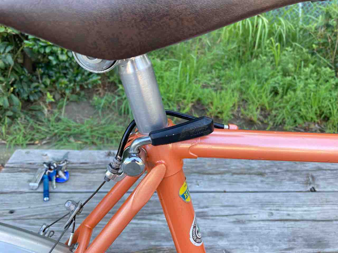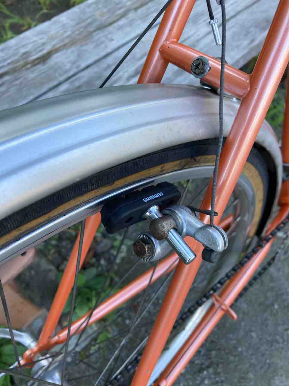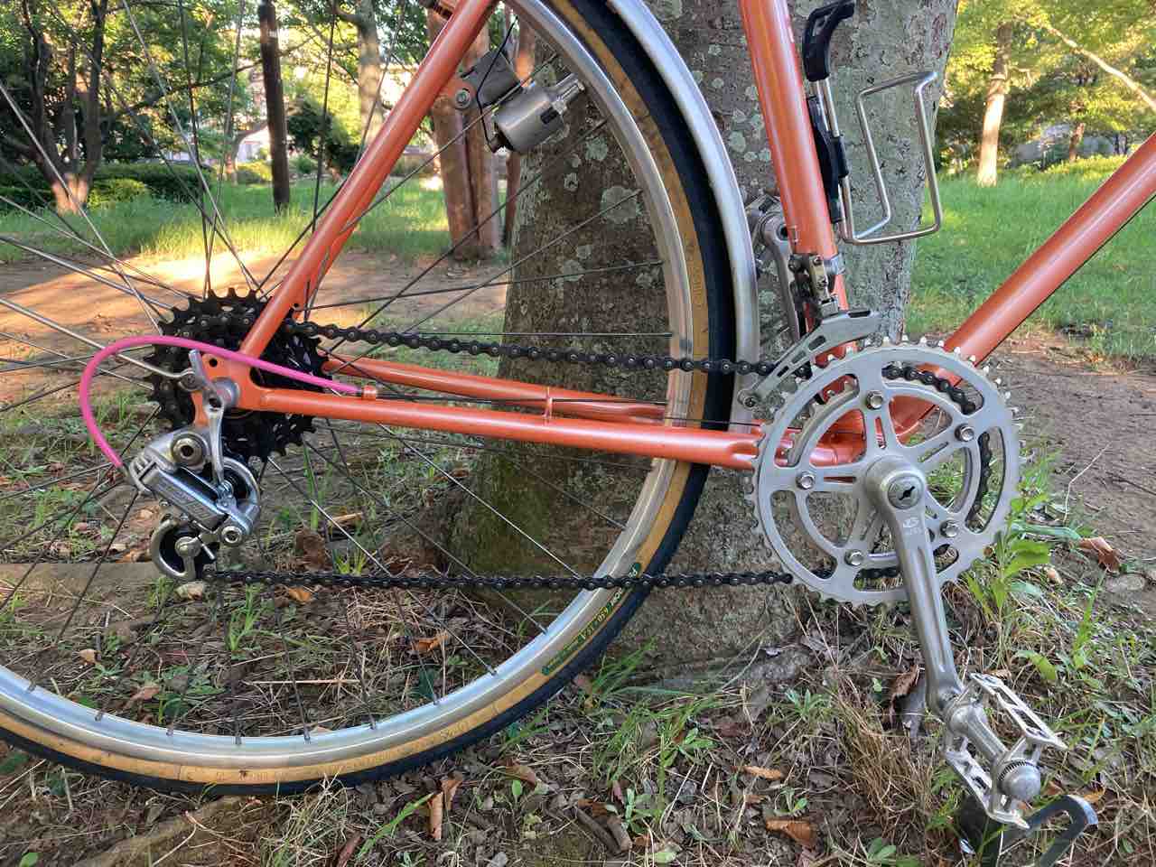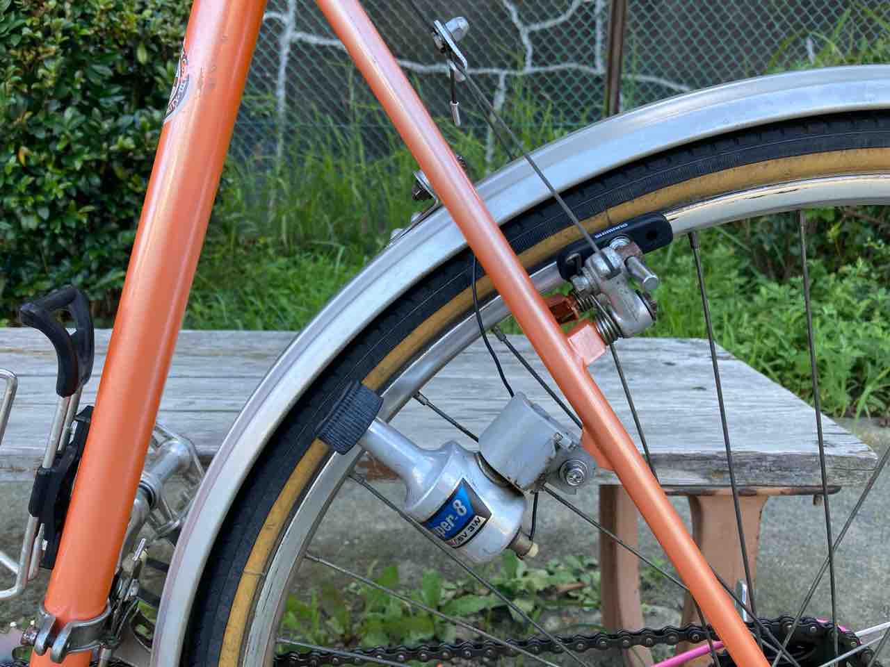 ↑お役御免となり、キャリア、カゴ、泥除け、スタンドを外すと!なんということでしょう。めっちゃくちゃ機敏に走るようになった。