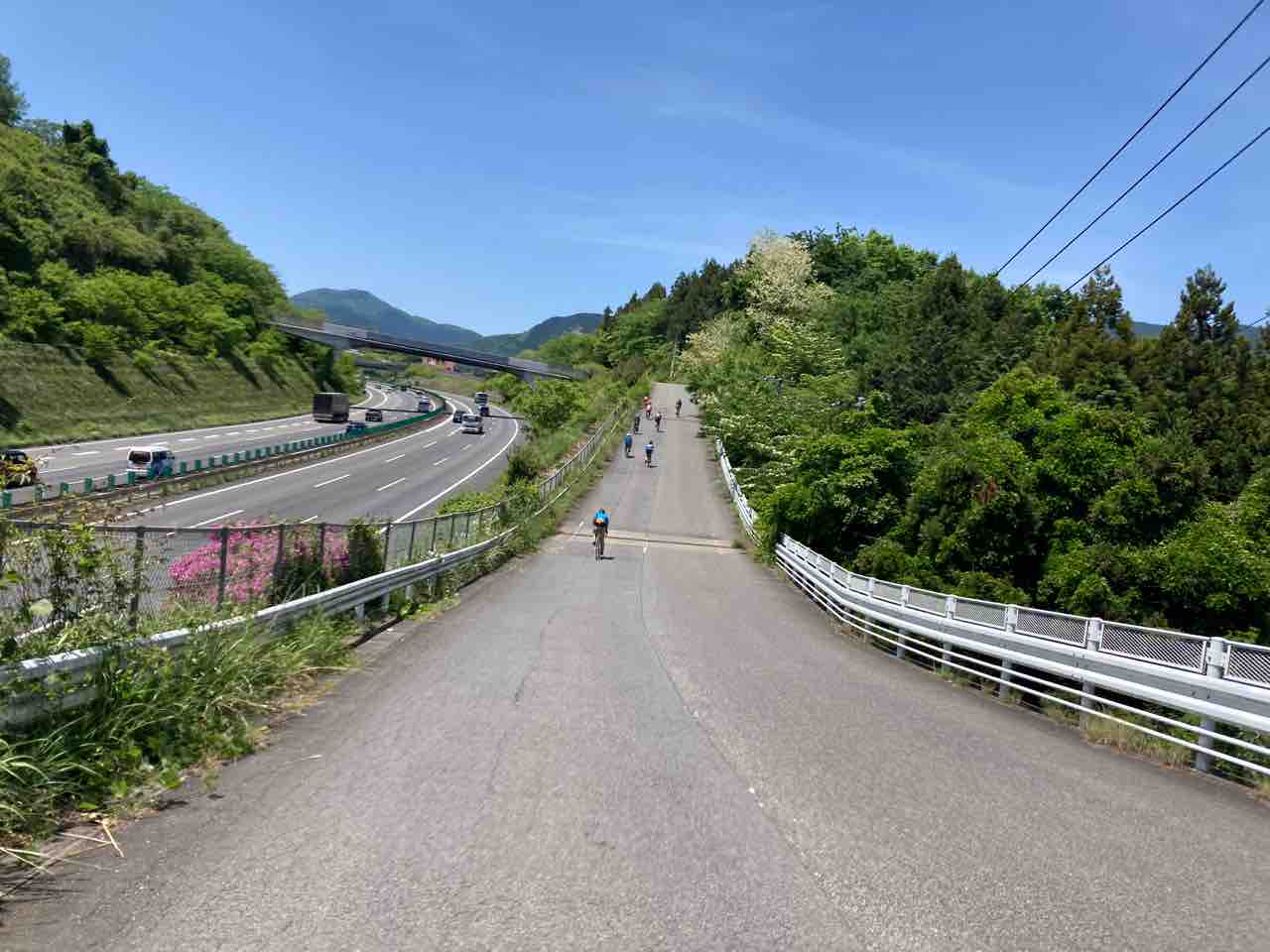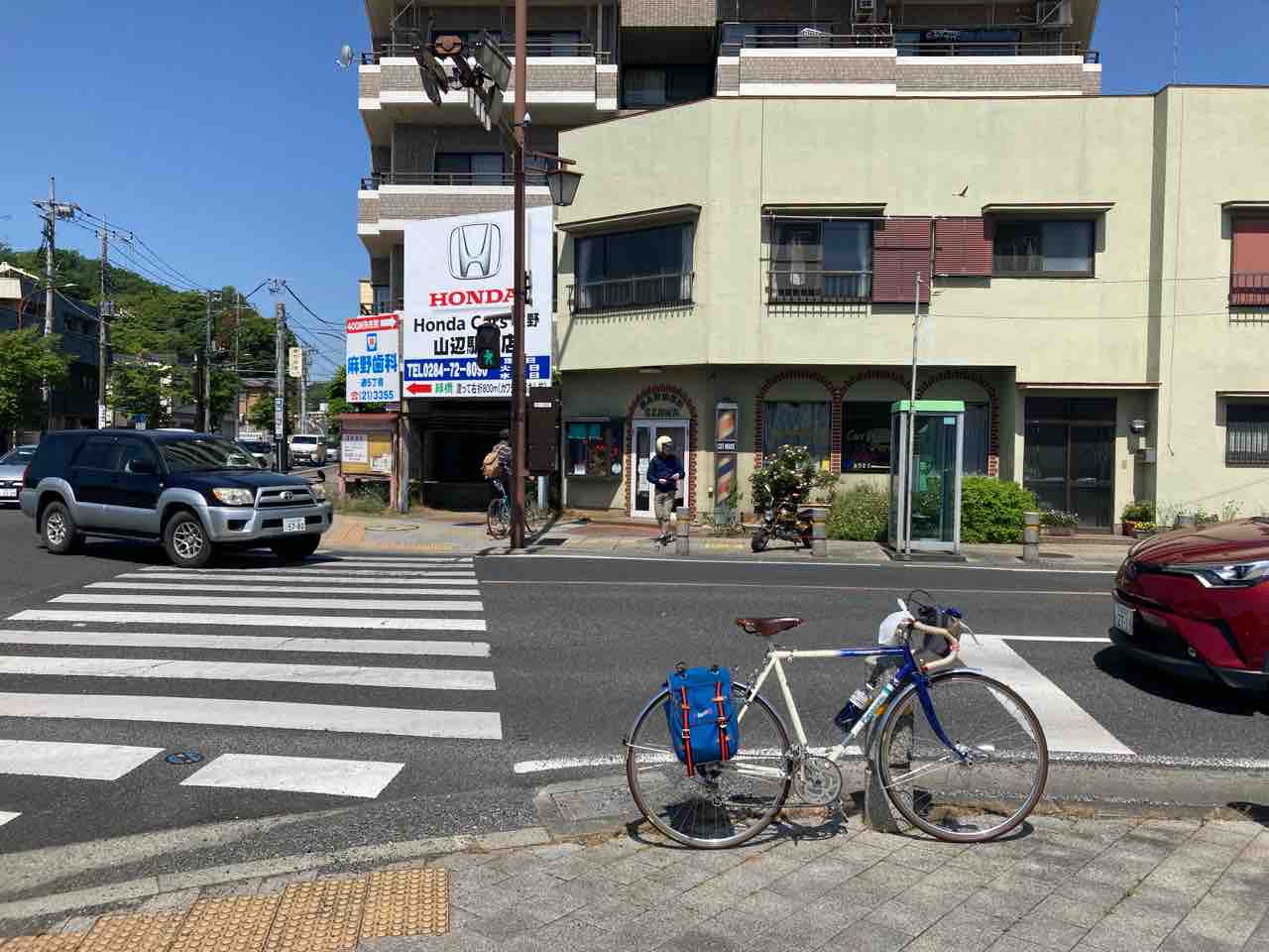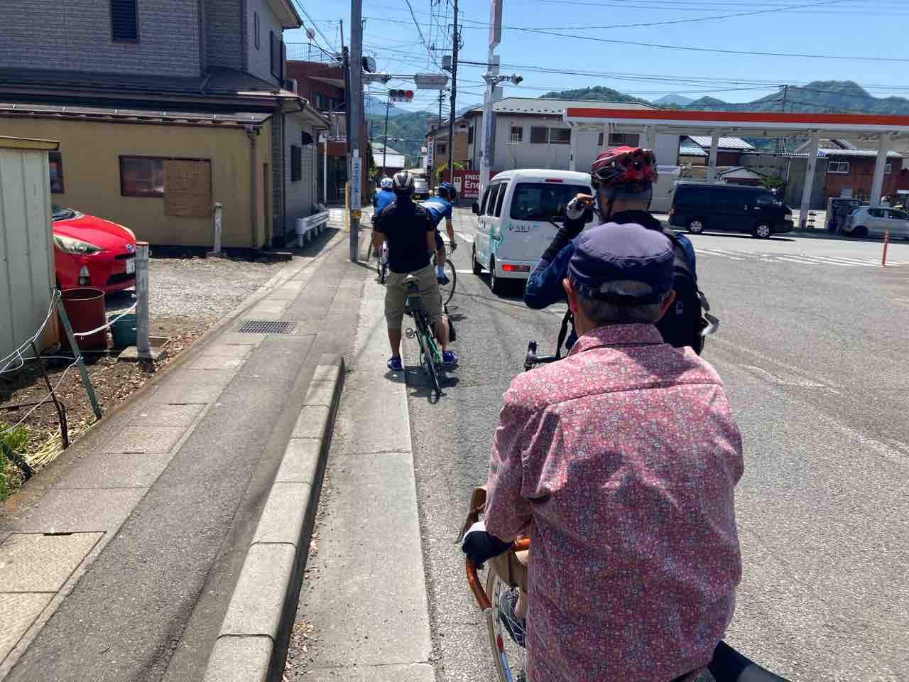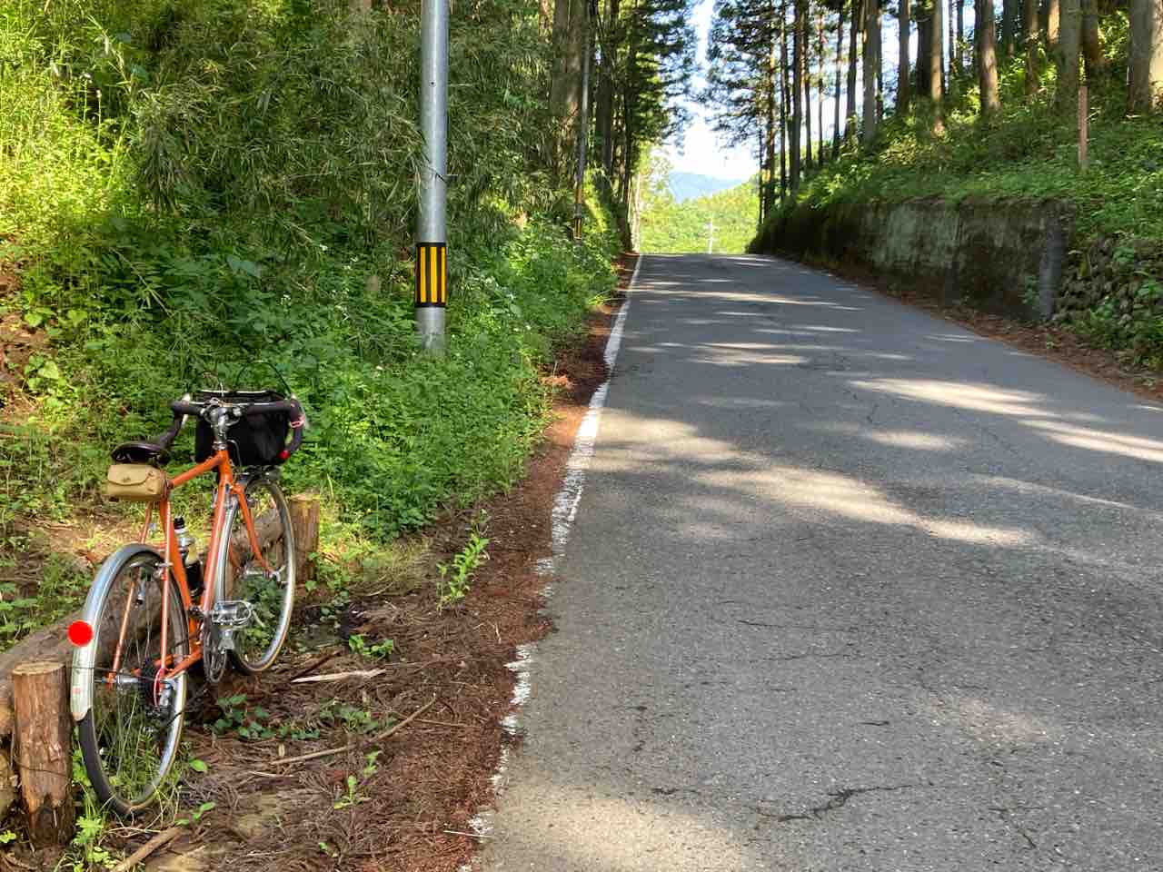 国道20号に入りコンビニでオニギリとだいふくを購入!少しだけ漕いだところで右の靴紐が駆動部に絡むのが気になり停車した。