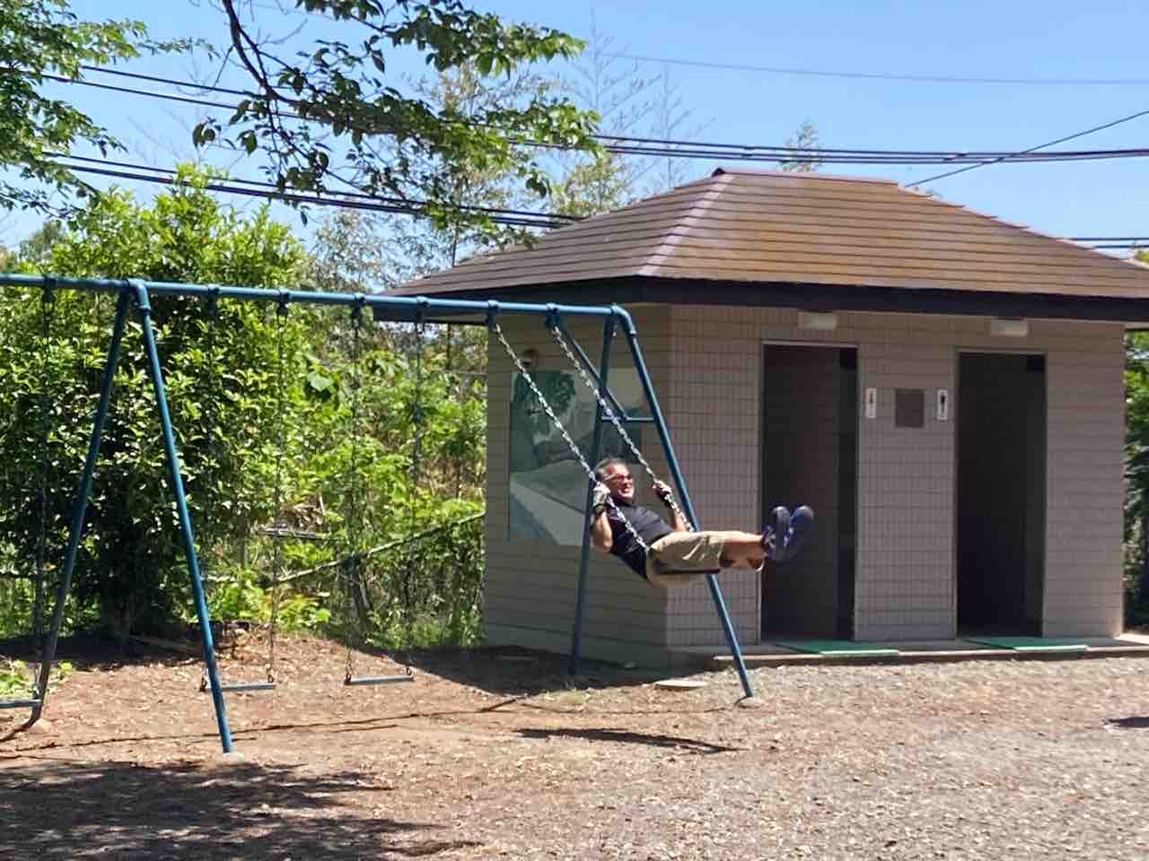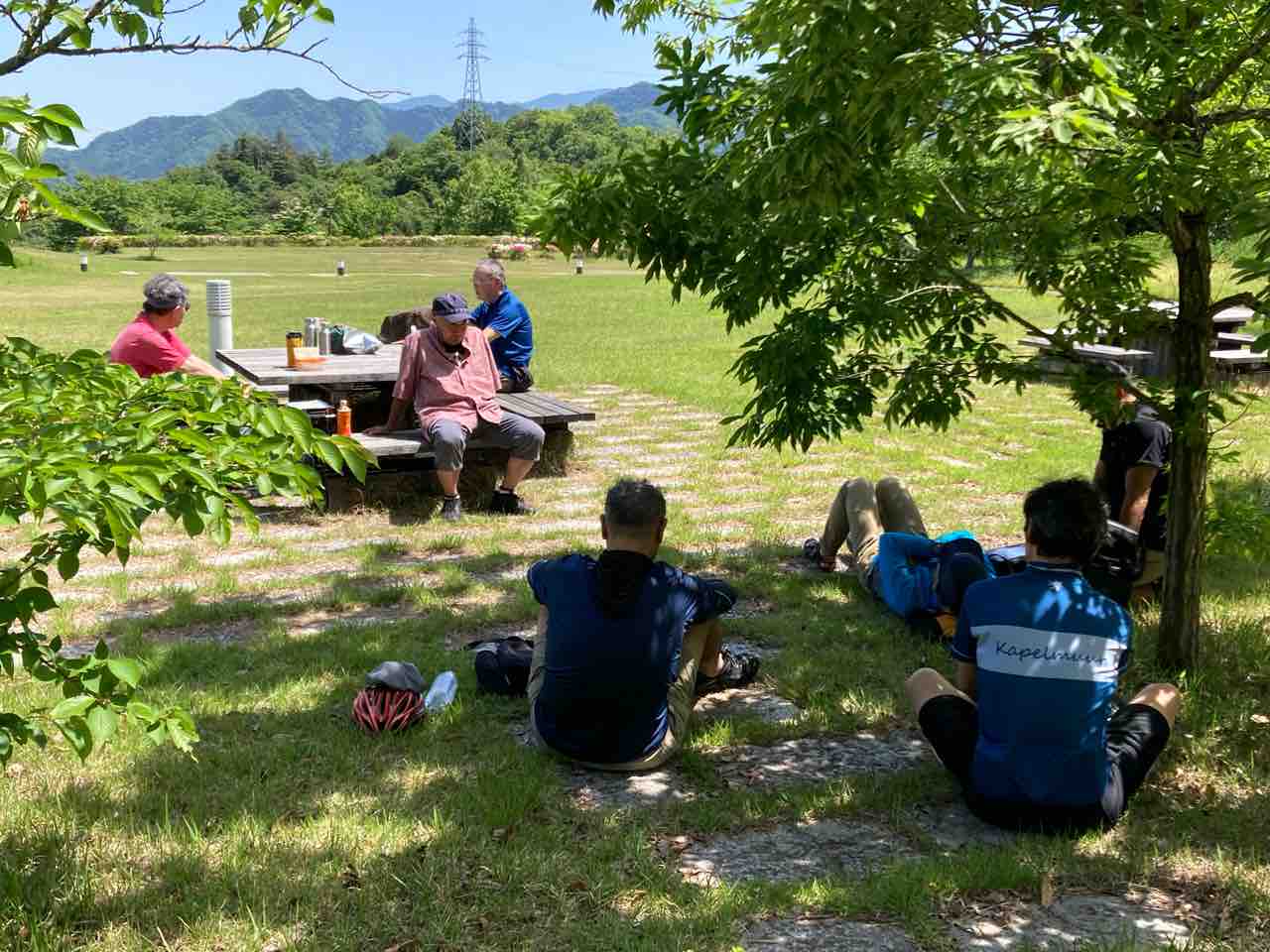 ↑談合坂サービスエリア内の草むらでランチタイムとなる。最近のSAは一般道から入れるところが増えたねー