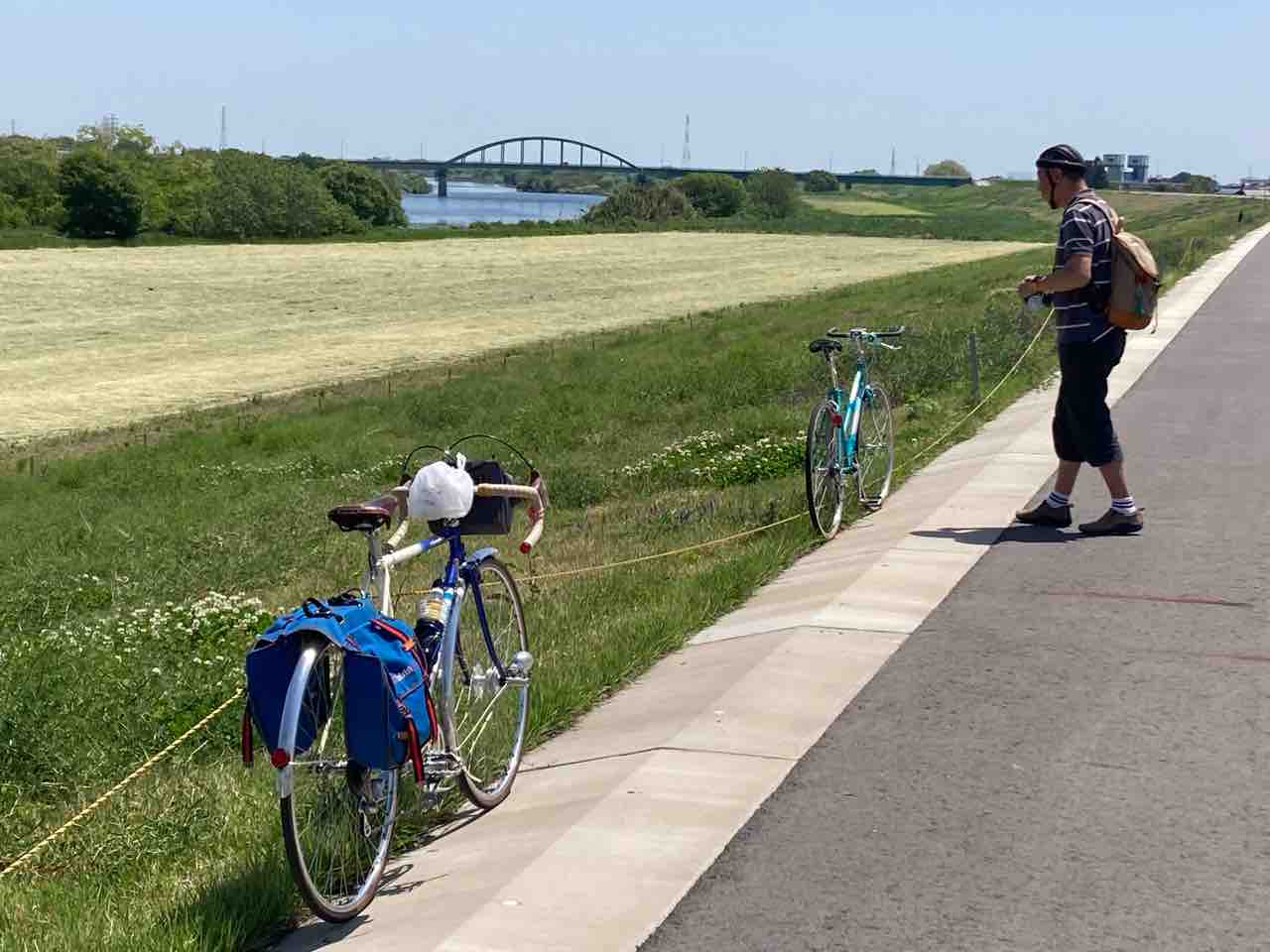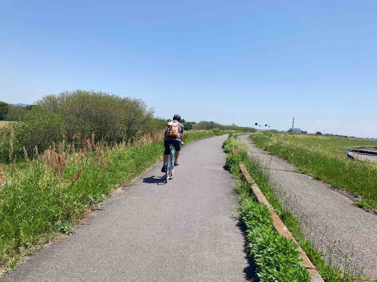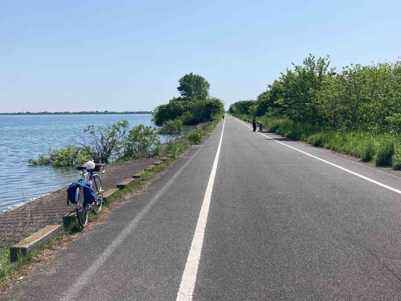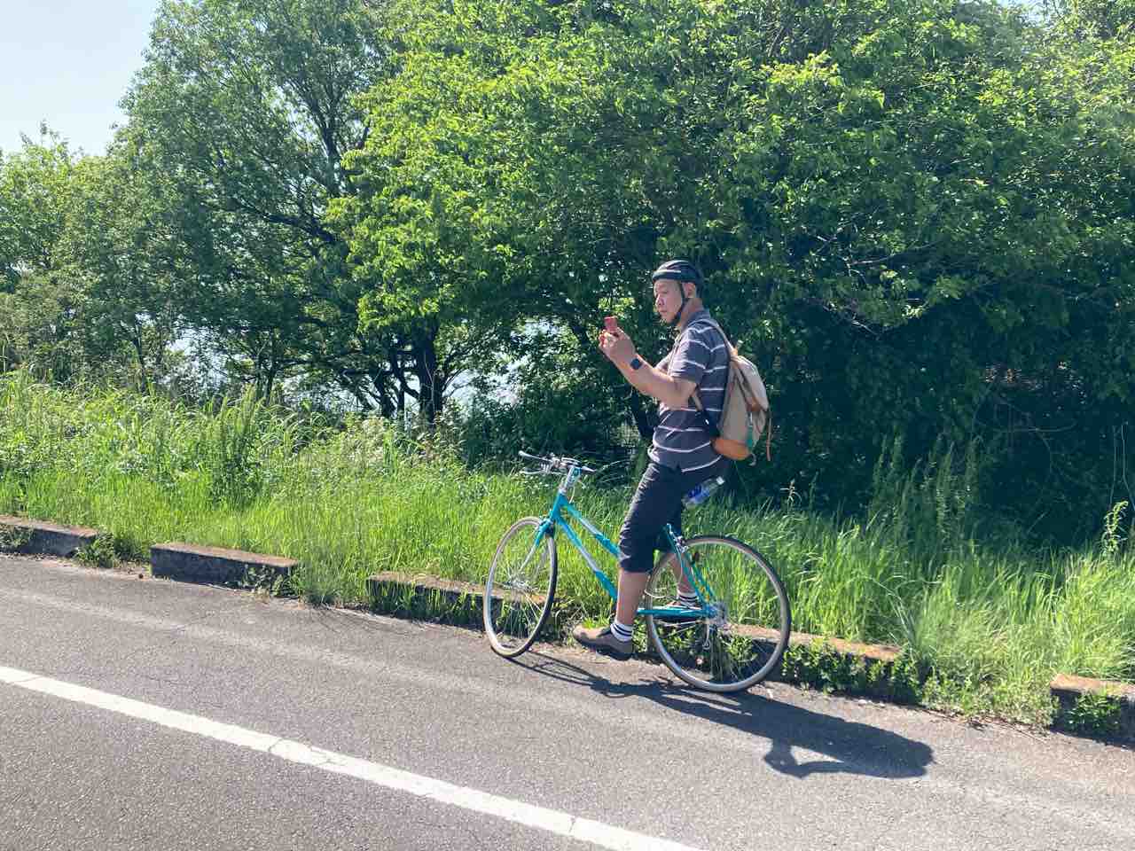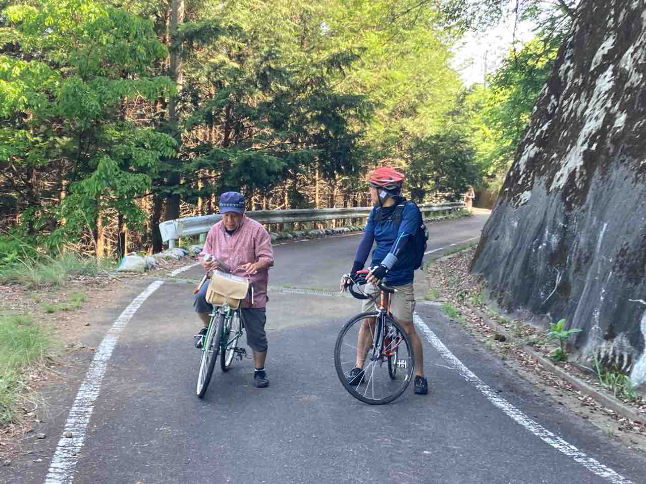 靴紐の末端処理も終わり「さぁ行くぞー」と、前方路肩に一台のクルマが停車している。そのクルマを追い越す際に声をかけらた。「むつうらっこさ〜ん」おー!カンタローさんではないか!