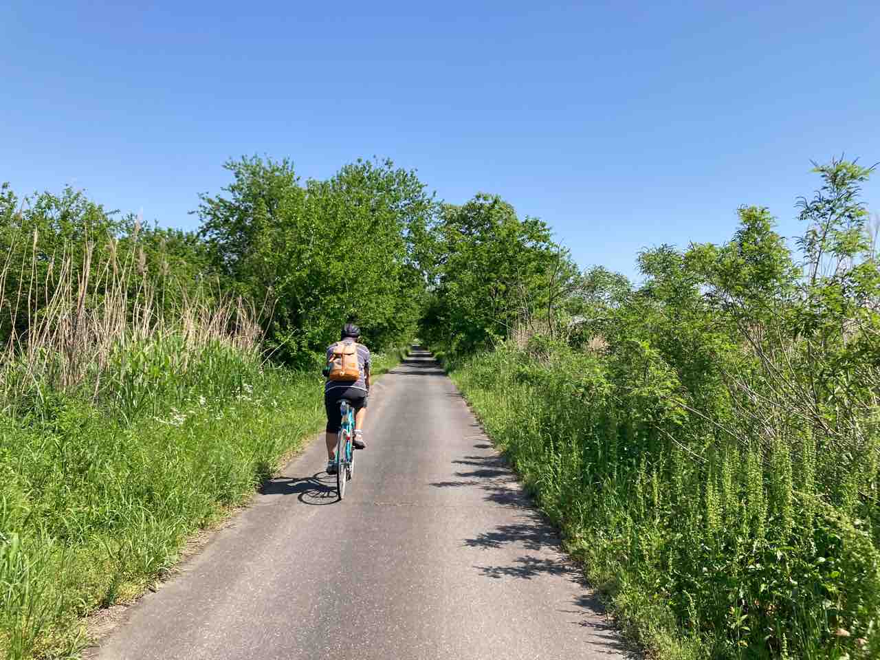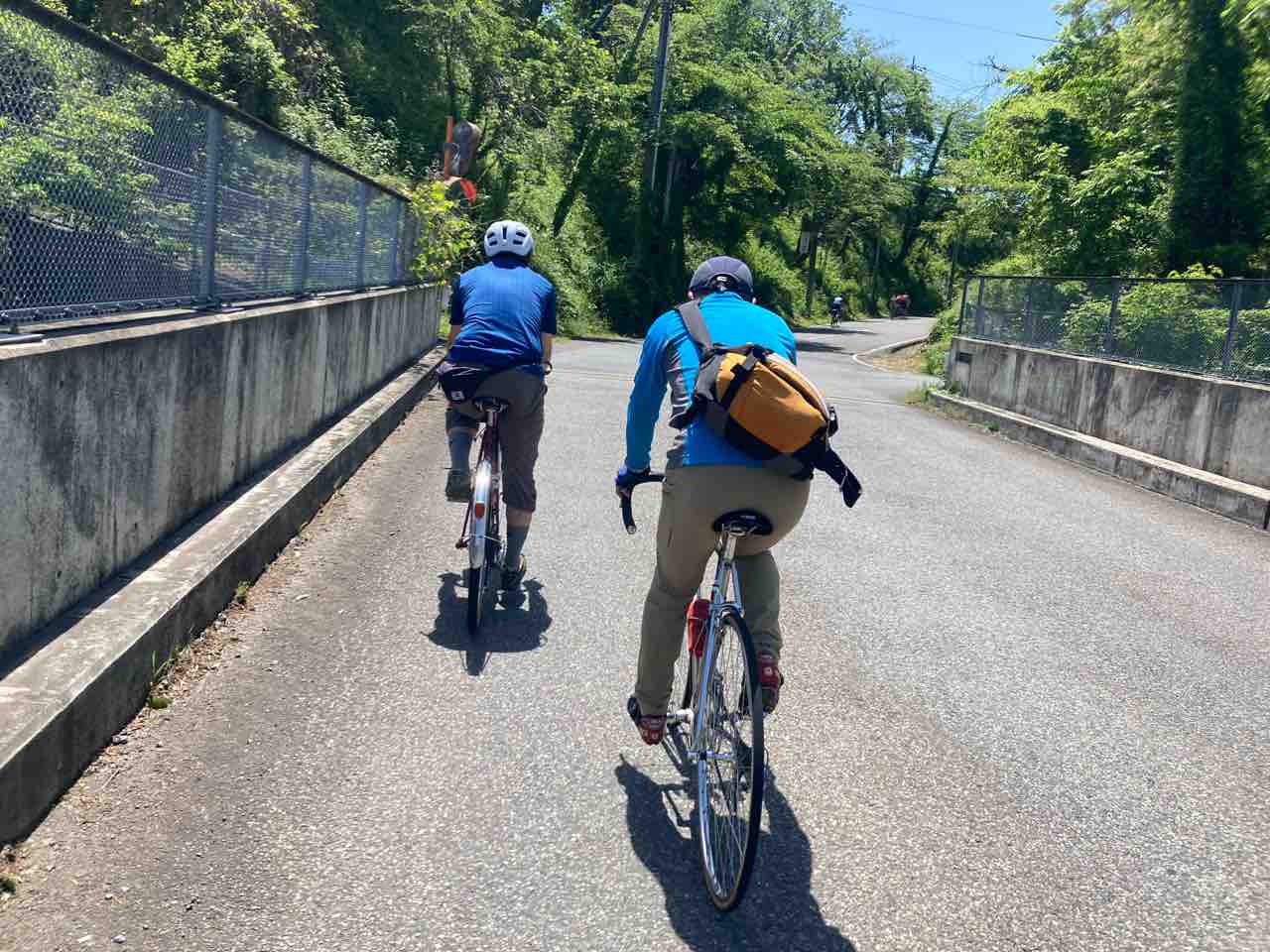 ↑11時ちょい前にO田さんが到着して総勢10台で漕ぎ出す。本日のプランナーshiokameさんが先頭である。