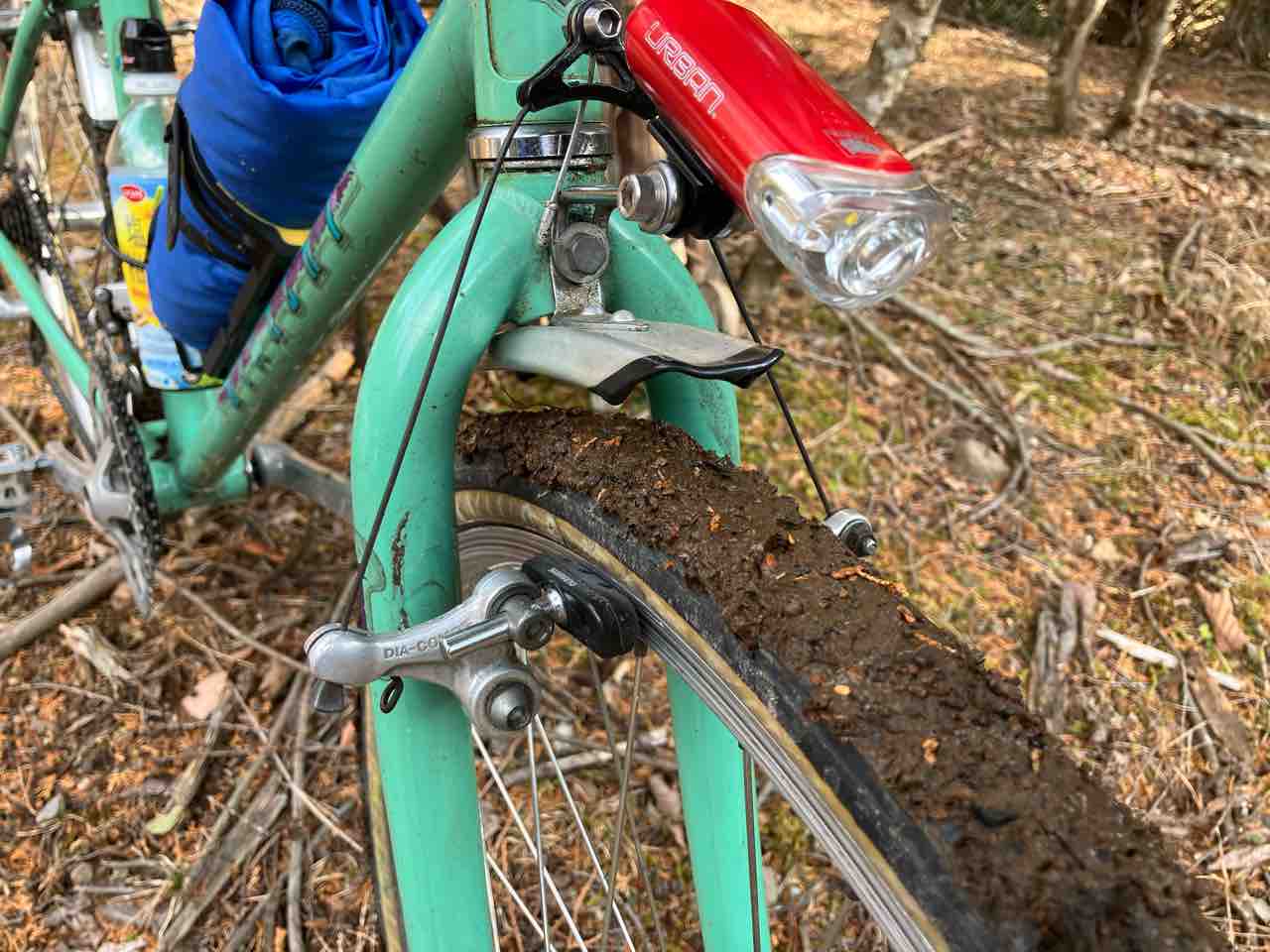 ↑多摩川中央公園でちょろっと休憩!福生市である。まだまだ明るい。遅くなってしまったが、本日の使用機材はパナもん太700C輪行車だ。
