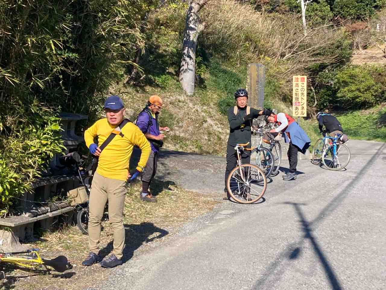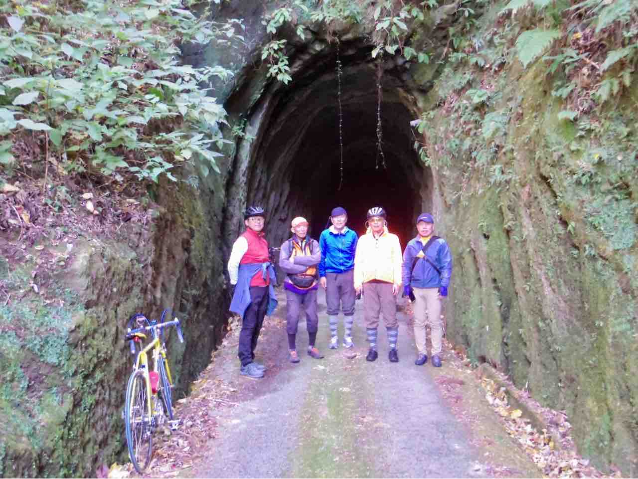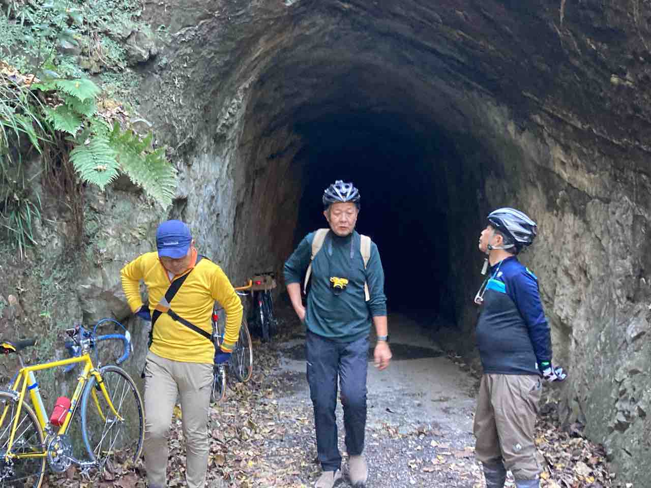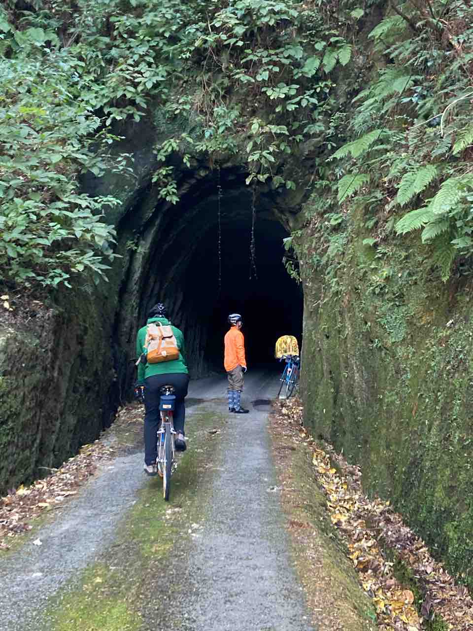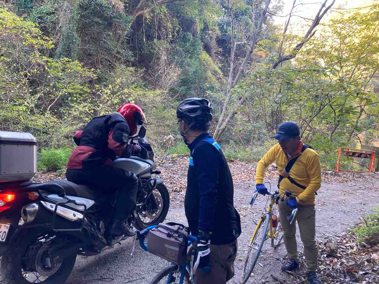 ↑2個目の隧道のところで出会ったライダー!手を振ったら立ち止まってくれた。「ぢ転車も好きだ」とのことでランドナーも2台持ってるそうな。暫し談笑。写真はTAKEさんが絡まれている図。