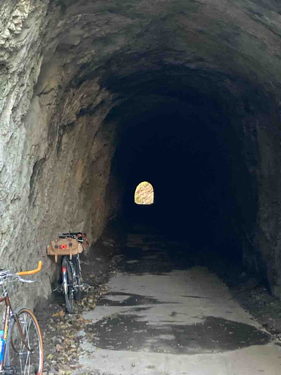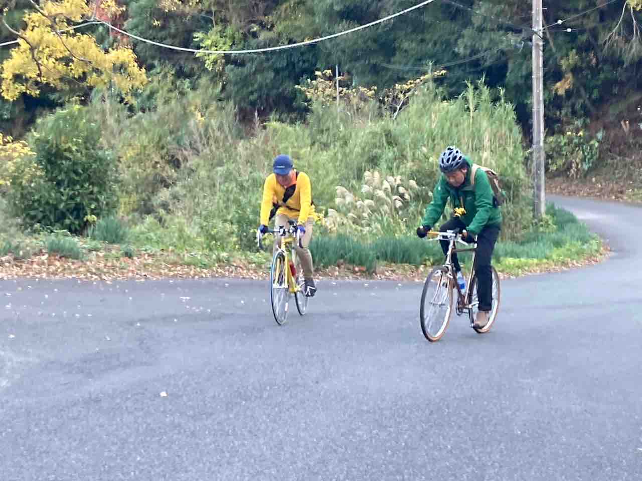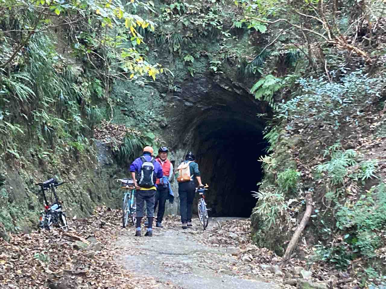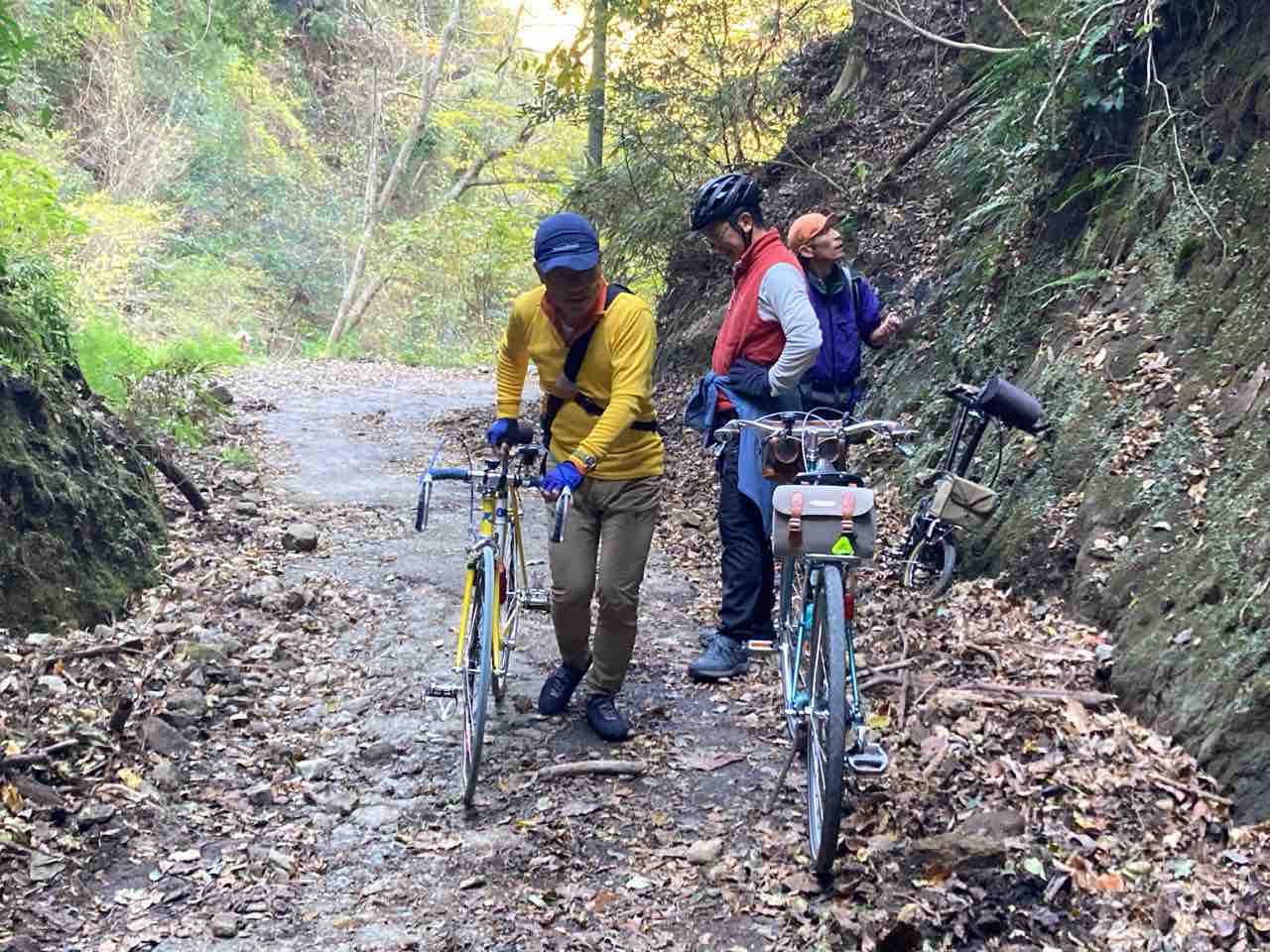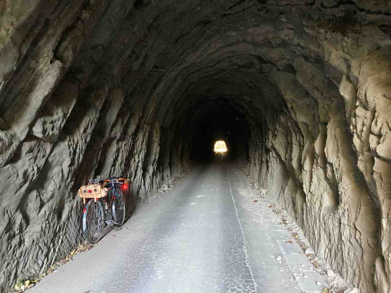 ↑2個目の隧道のところで出会ったライダー!手を振ったら立ち止まってくれた。「ぢ転車も好きだ」とのことでランドナーも2台持ってるそうな。暫し談笑。写真はTAKEさんが絡まれている図。
