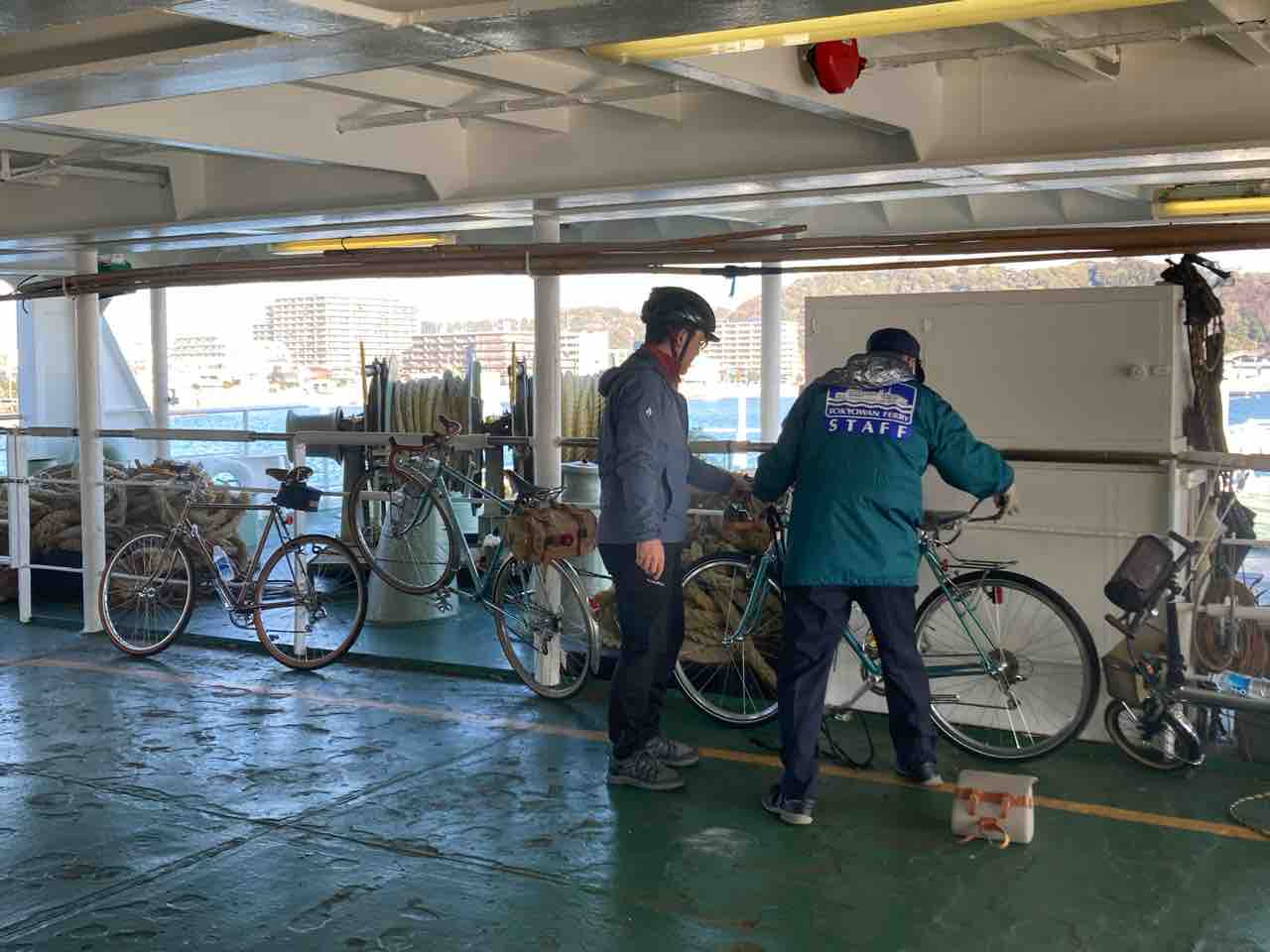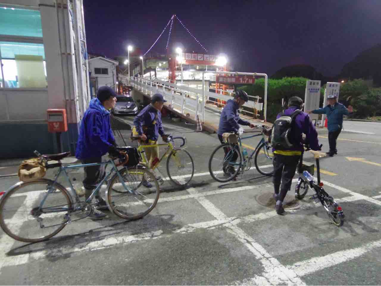 ↑金谷港到着!ココでAさんと合流。都合6人となる。それにしても、ぢ転車の車種がみんなバラバラである。14㌅ミニ、パスハンター、ロードレーサー、ランドナー等
