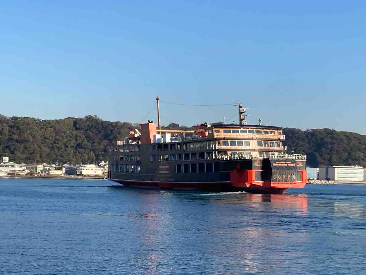 ↑しらはま丸は黒船仕様にリニューアル。帰りにこの黒船に乗ることになる。