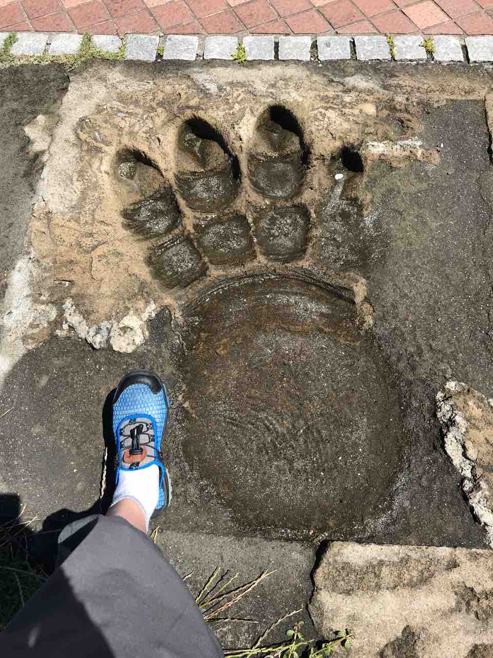 ↑多々良浜の「ゴジラの足跡」あたしにとってはパワースポットです。雨水が溜まってたんで、脇に足を添えてパシャり!