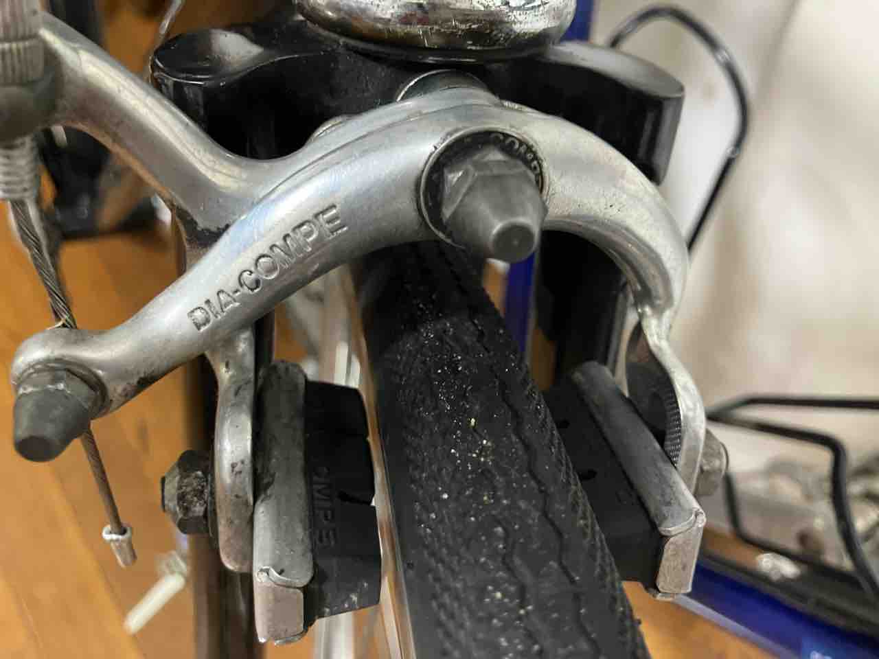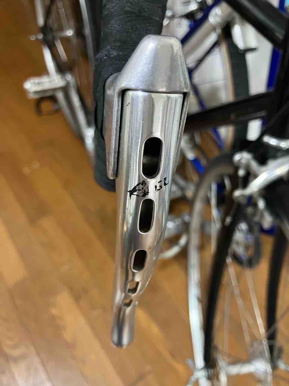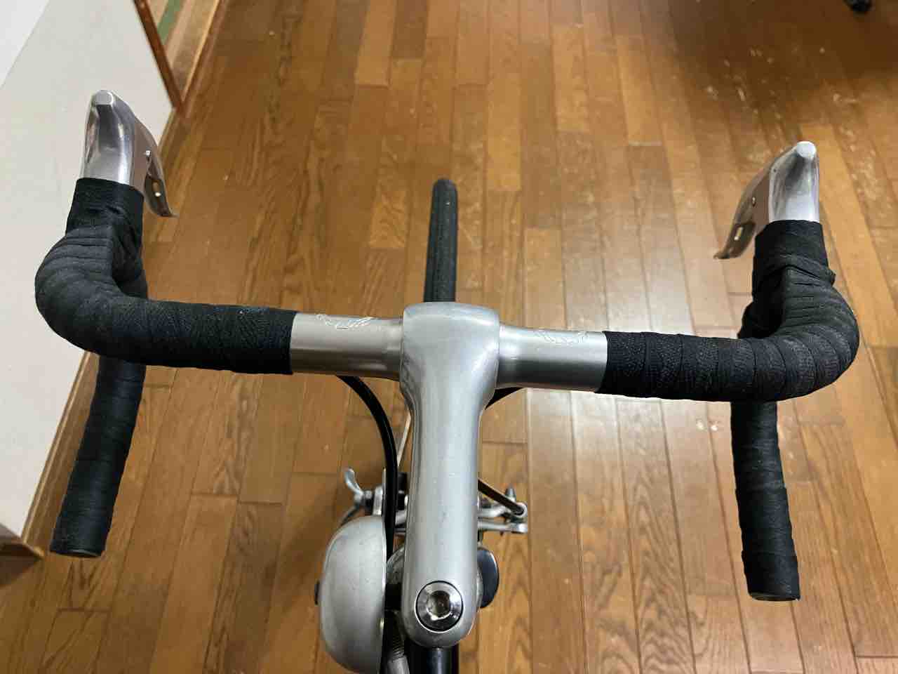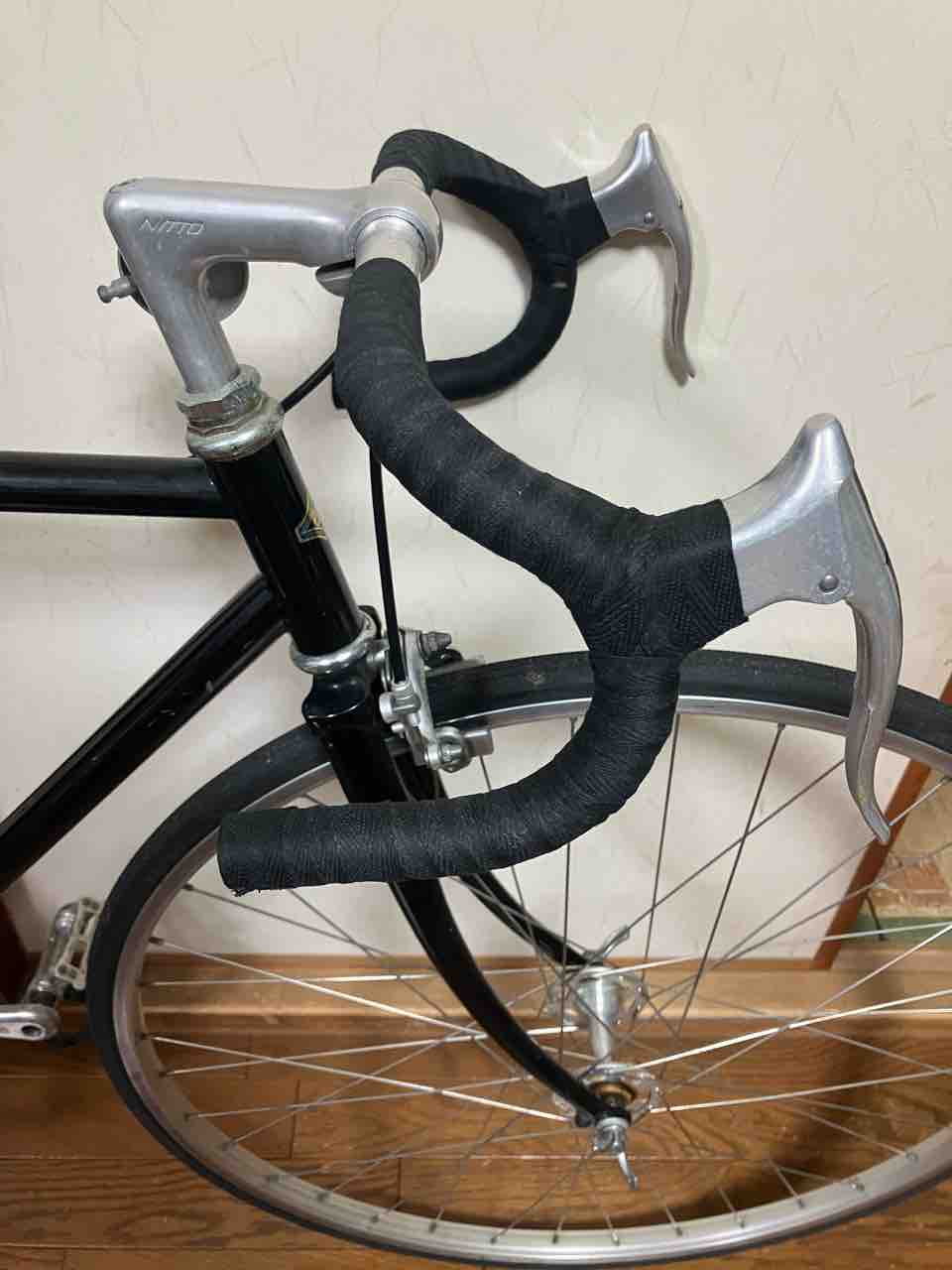 ↑ブレーキレバーはエアロタイプに、クロ色バーテープを巻いた。コットン気分である。
