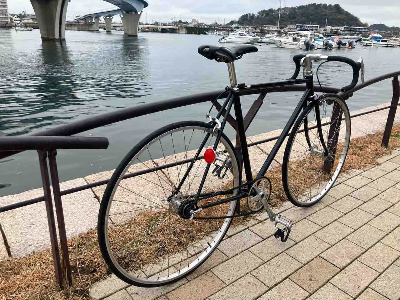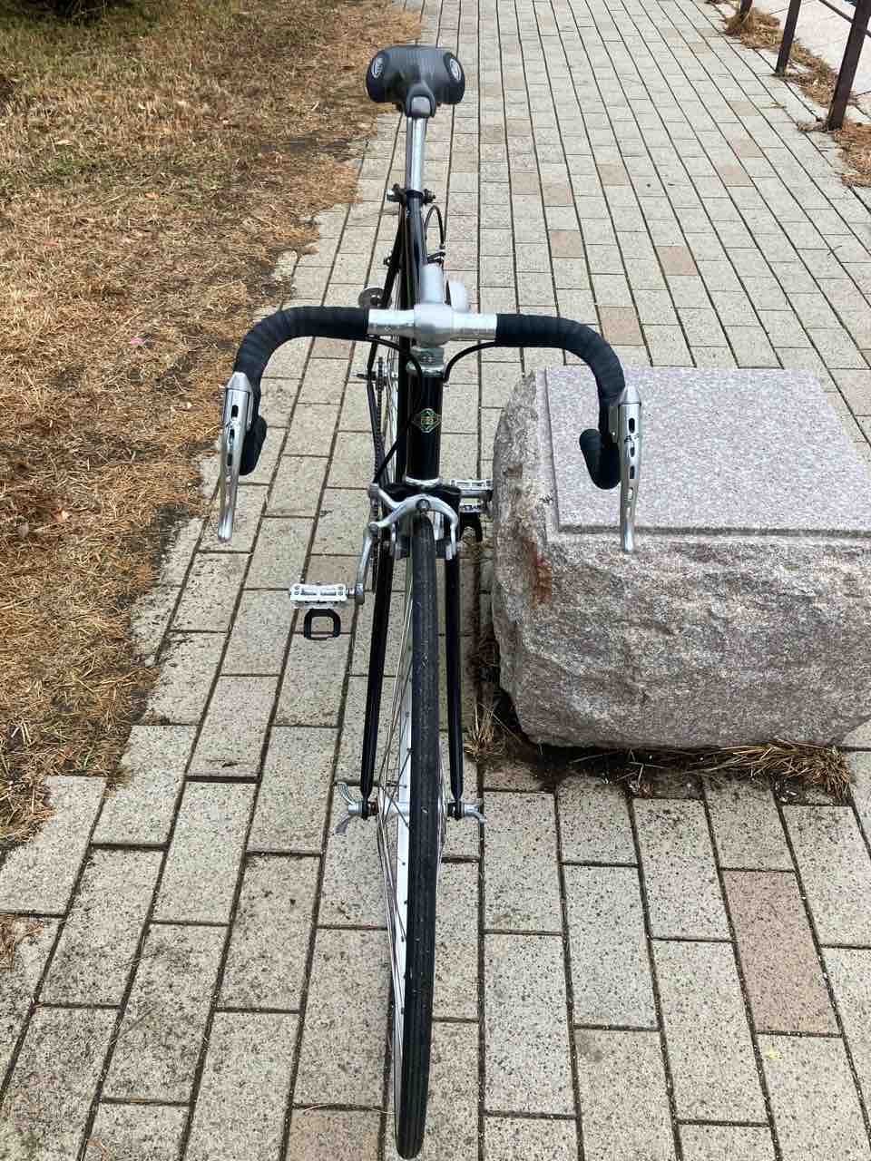 ↑結局はこの姿に落ち着いた。一見トラックレーサー!所謂ピストだが、固定ギア⚙️ではなくフリーホイール仕様だ。だからもどきである。